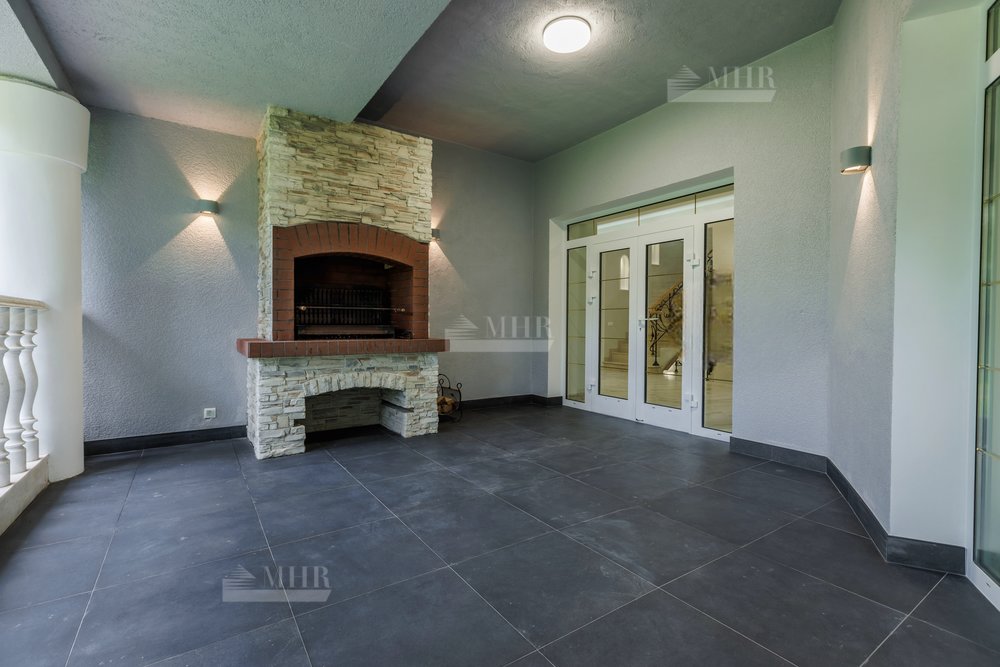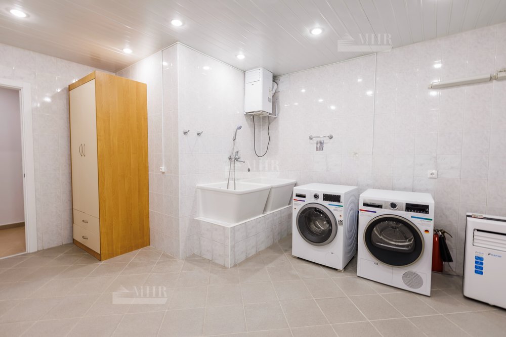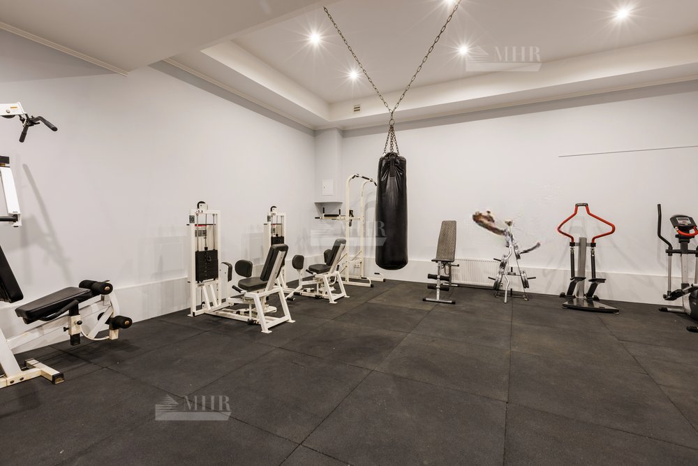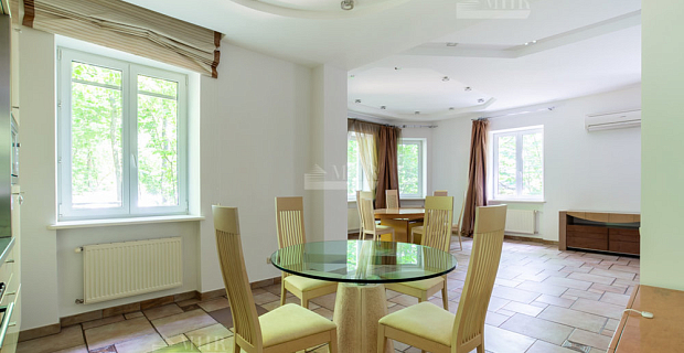 1й этаж: холл, кухня с выходом на террасу, гостевой с/у, столовая с выходом на террасу, гостиная с камином и с выходом на террасу, бильярдная, бильярдная, SPA-зона: сауна, тренажерный зал, с/у, душевая, бассейн (17м), кабинет, комната для персонала;