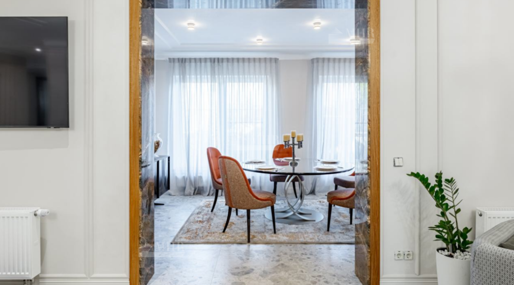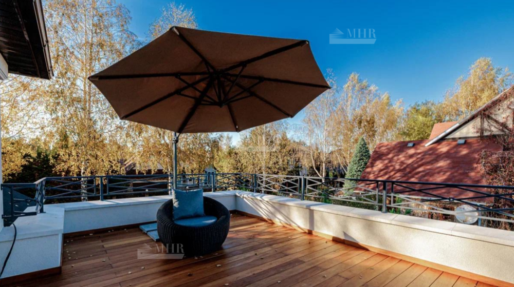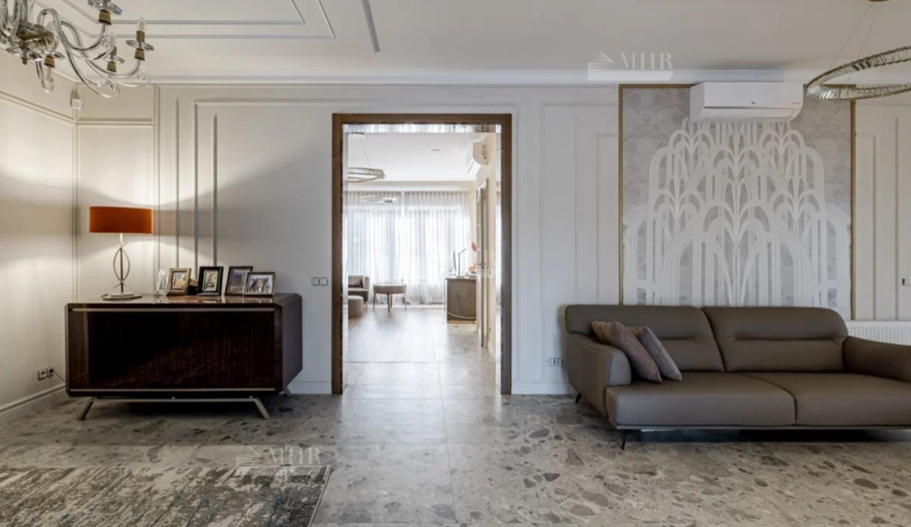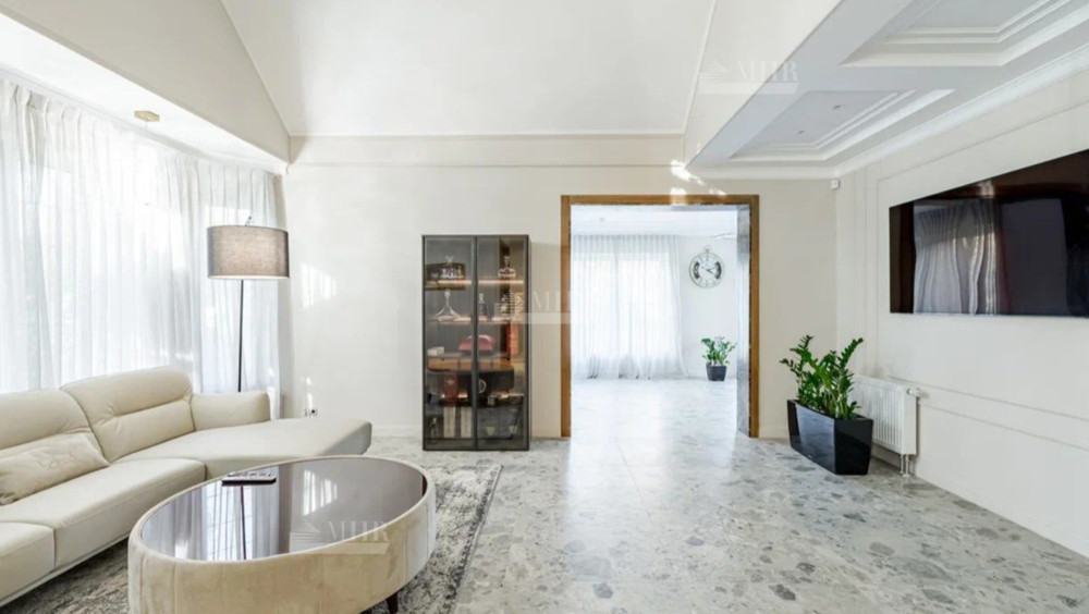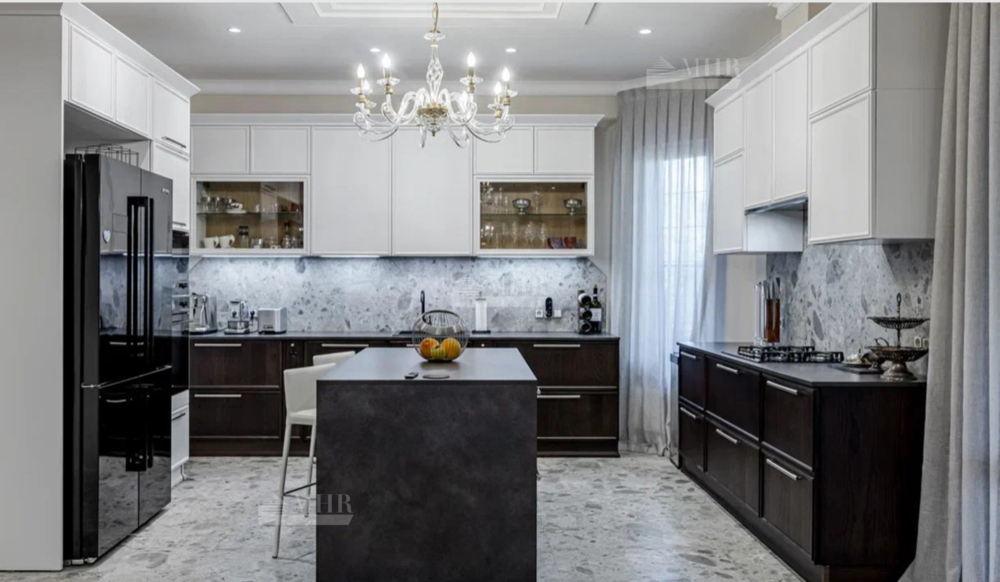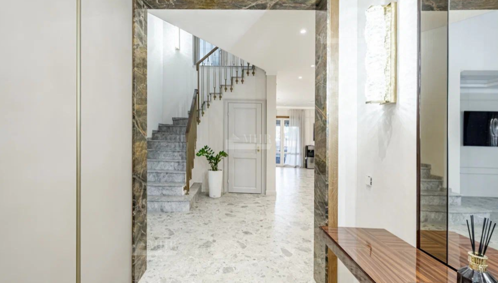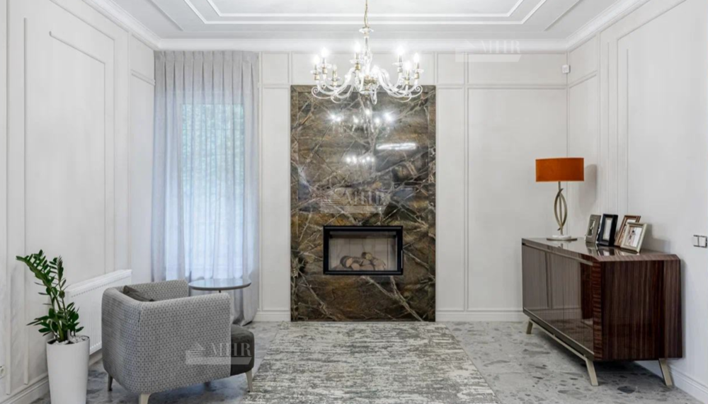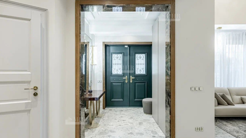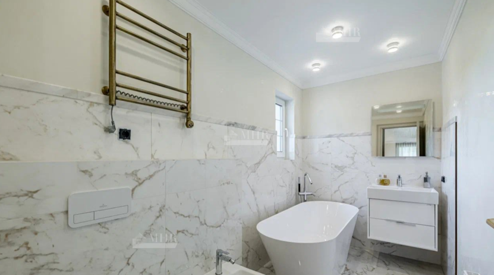 Новый, стильный дом, с изыскано выдержанной архитектурой с обрамлением фасада натуральным камнем. Современные внутренние интерьеры. В отделке использованы качественные, селекционные материалы. Поверхность пола выполнена в стиле старинного камня Terrazzo alla veneziana, поверхности стен и потолка обрамлены венецианской штукатуркой и слэбами мрамора Бидасар Грин. Итальянская эксклюзивная мебель, свет, гардеробные, аксессуары, премиальная сантехника V&B, Jacob Delafon, мраморные итальянские ванны Salini L`anima Del`acgua, бытовая премиальная техника SMEG. Система вентиляции. Видеонаблюдение и система контроля и управления доступа. Скоростной  интернет.