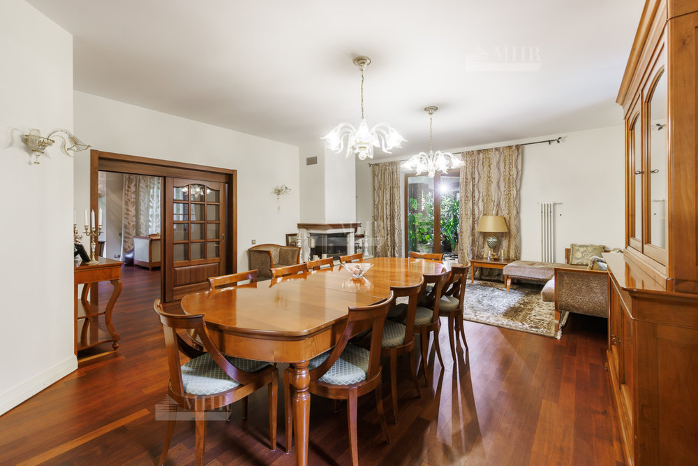 1й этаж: гардеробная, гостевой санузел, кухня, столовая, гостиная с камином и выходом на террасу, зимний сад, котельная, постирочная, гараж на 2 м/м с кладовой и мойкой;