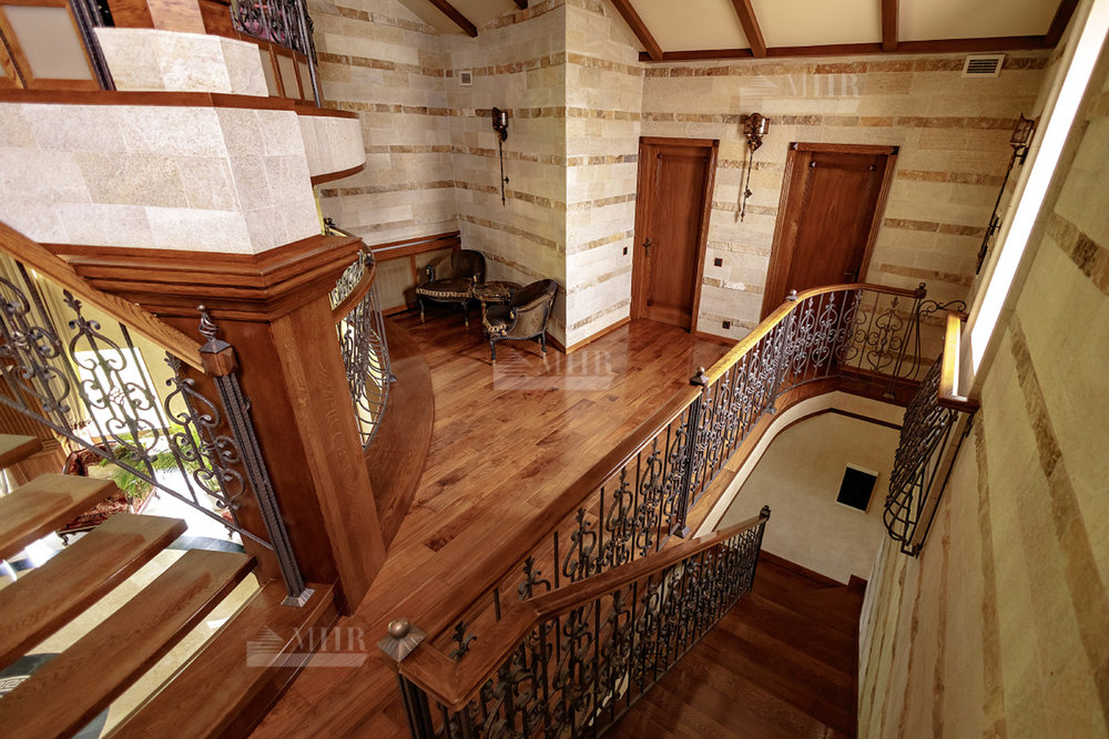 2  этаж -хозяйская спальня с санузлом и гардеробной, 2 детские спальни с санузлами, 2 гостевые спальни с санузлами.