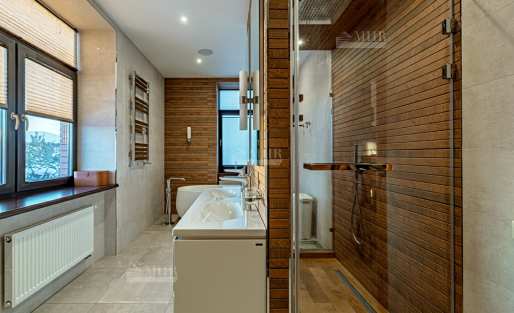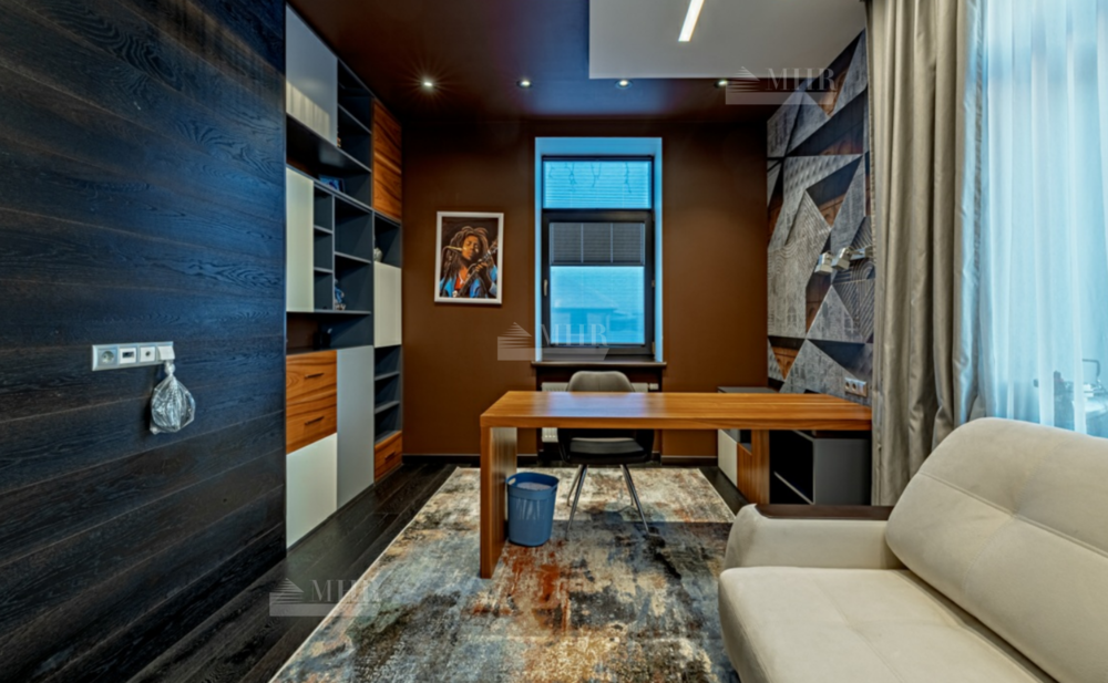 2-й этаж: мастер-блок( спальня, кабинет, ванная комната, гардеробная), 2 спальни, ванная комната.