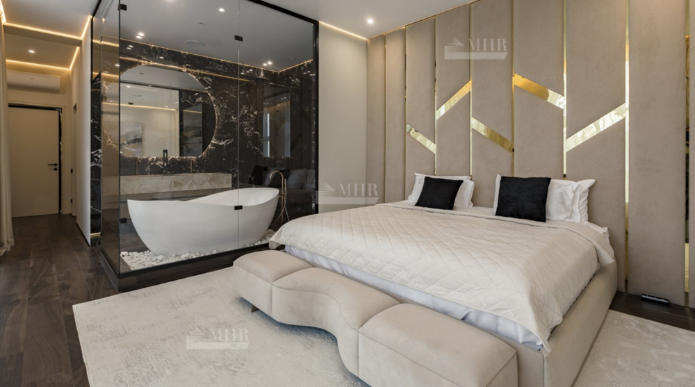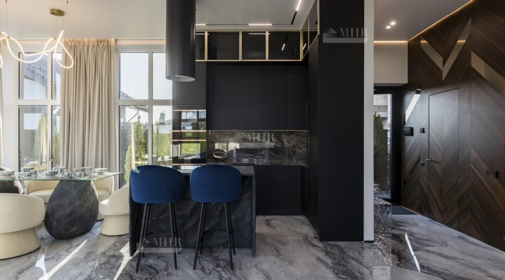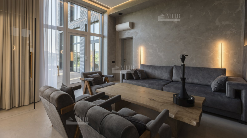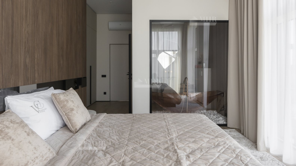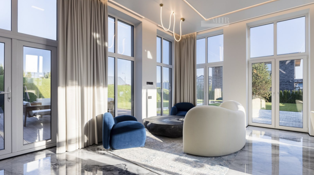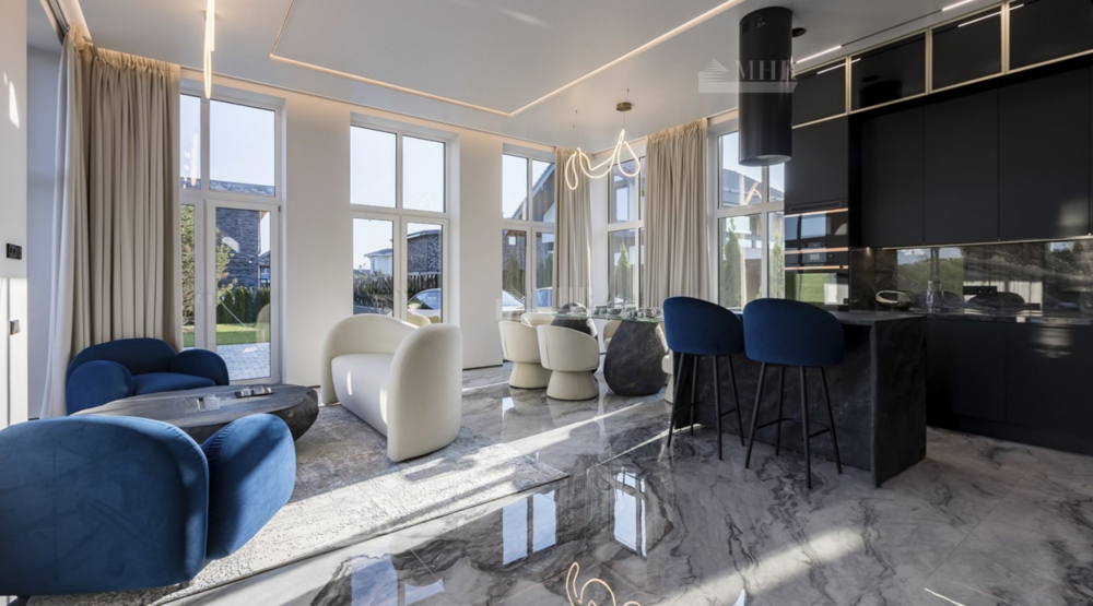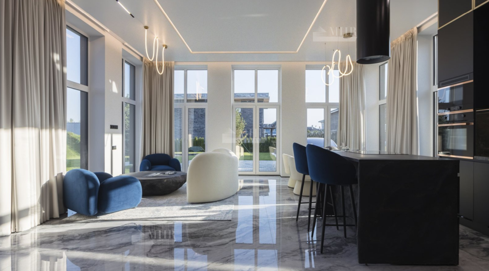 Интерьеры, оформленные в спокойных тонах. Для безупречного комфорта оборудованы система «умный дом», приточная вентиляция, кондиционирование и подогрев пола.
