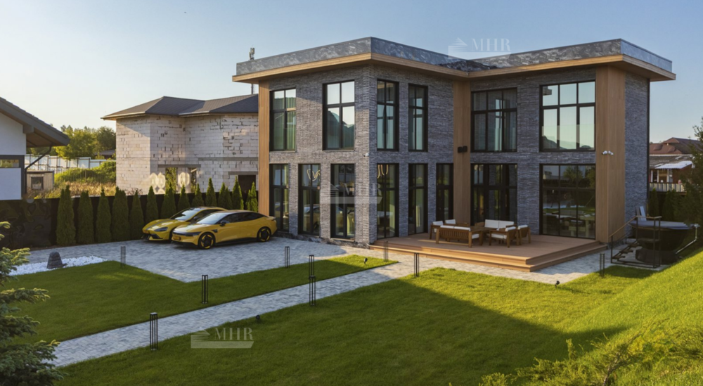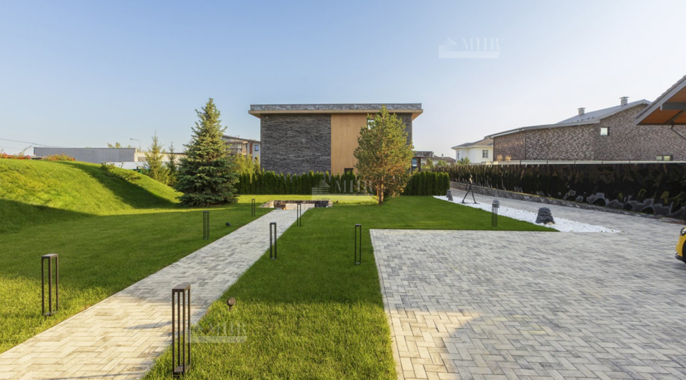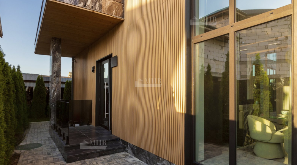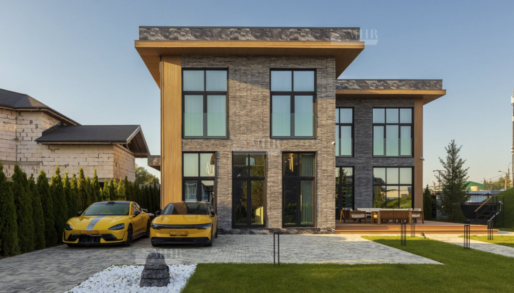 Предлагем к покупке загородный коттедж, расположенный на полевом участке. Современный фасад с плоской крышей облицован клинкерным кирпичом RockWalls и рейками Great Wall Board с фактурой дерева, а подсветка Joyled гармонично подчёркивает выразительность здания. Панорамные окна наполняют дом естественным светом и лучами солнца.