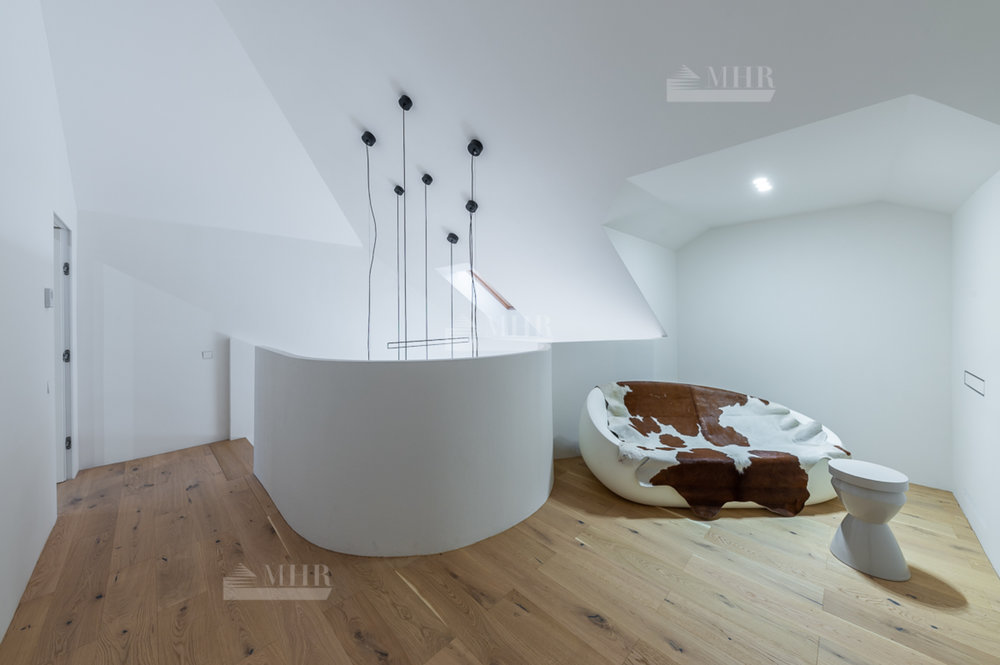 2 этаж: Мастер-спальня с панорамным эркерным окном и биокамином, двумя раздельными гардеробными и большой мастер-ванной с отдельностоящей ванной Английского бренда BAGNODESIGN и VADO. Две комнаты с отдельными системами хранения и санузлами (окна в каждом санузле). Холл с выходом на балкон;