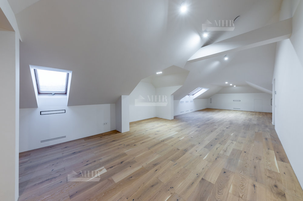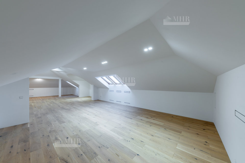 Мансарда (100 метров свободной планировки) с санузлом, зона отдыха с диваном;