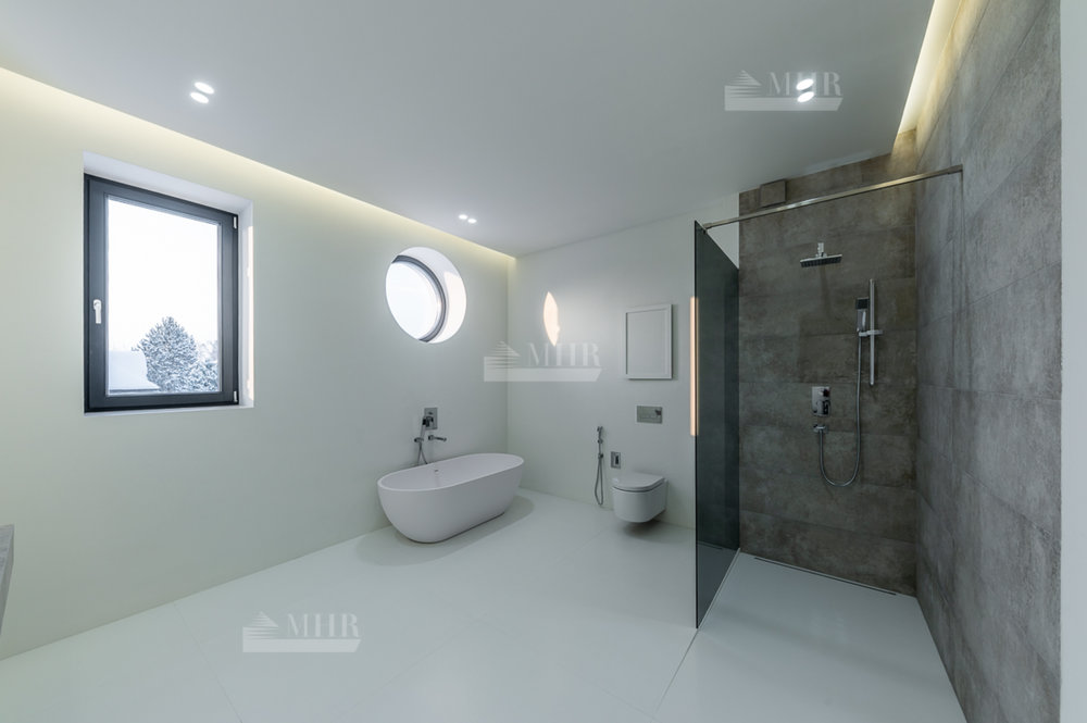 Материалы известных мировых производителей: вся сантехника в доме BAGNODESIGN LONDON с идентификационными номерами, деревянные стеклопакеты, скрытые двери INVISIBLE UNION высота 240 - 280 см, выключатели и розетки LS ZERO - JUNG, пол паркет дуб масло.