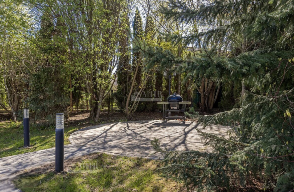На участке выполнен ландшафтный дизайн с системой автополива, организована зона барбекю.