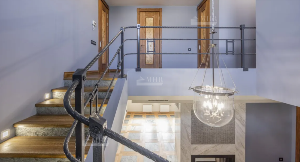 Дом отличается техническим оснащением высокого уровня и качественной отделкой с применением дорогостоящих материалов. Все люстры и светильники, а также сантехника- Англия. Дом украшают мраморные подоконники, гранитные террасы и двери, которые были изготовлены под заказ.