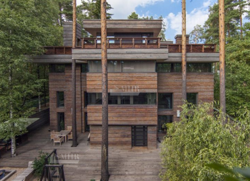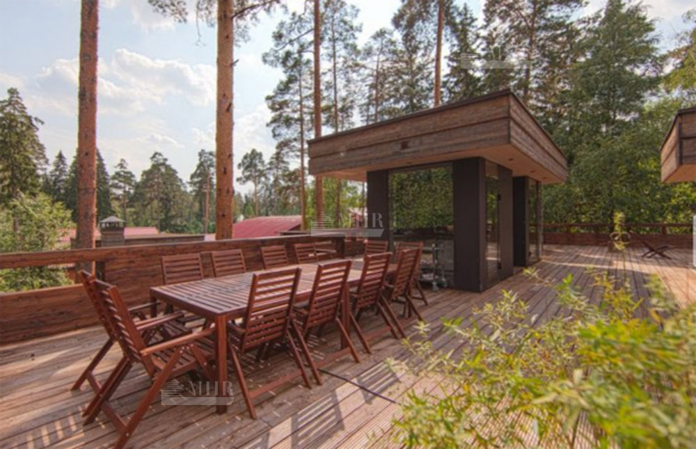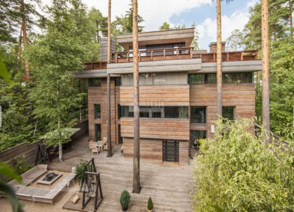 Дом в стиле Фрэнка Ллойда Райта  расположился в живописном месте в Жуковке. Архитектурной изюминкой объекта является великолепная планировка, благодаря которой домовладение имеет большое количество зон отдыха.