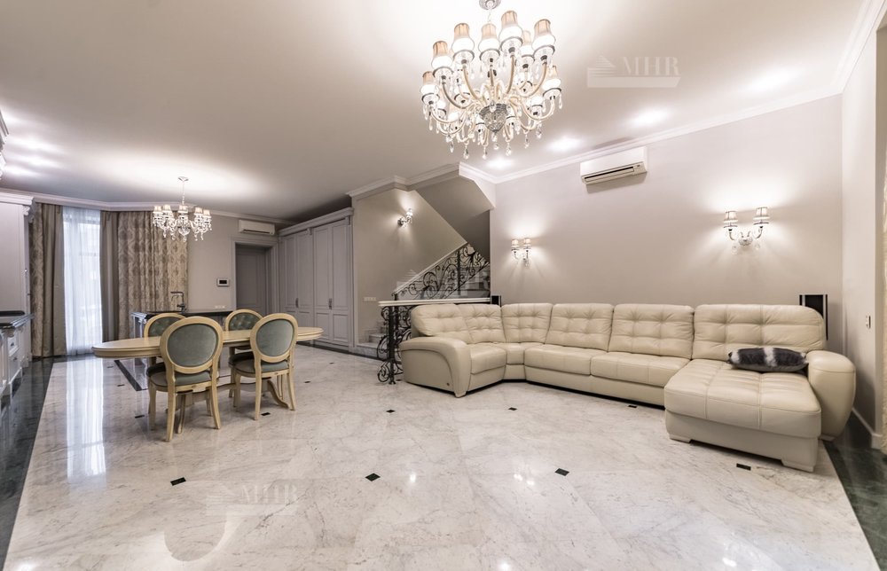 К продаже предлагается таунхаус в классическом стиле. Дом имеет высокие потолки и панорамные окна. Граничит с индивидуальными домами, за счет чего у меньше соседей.