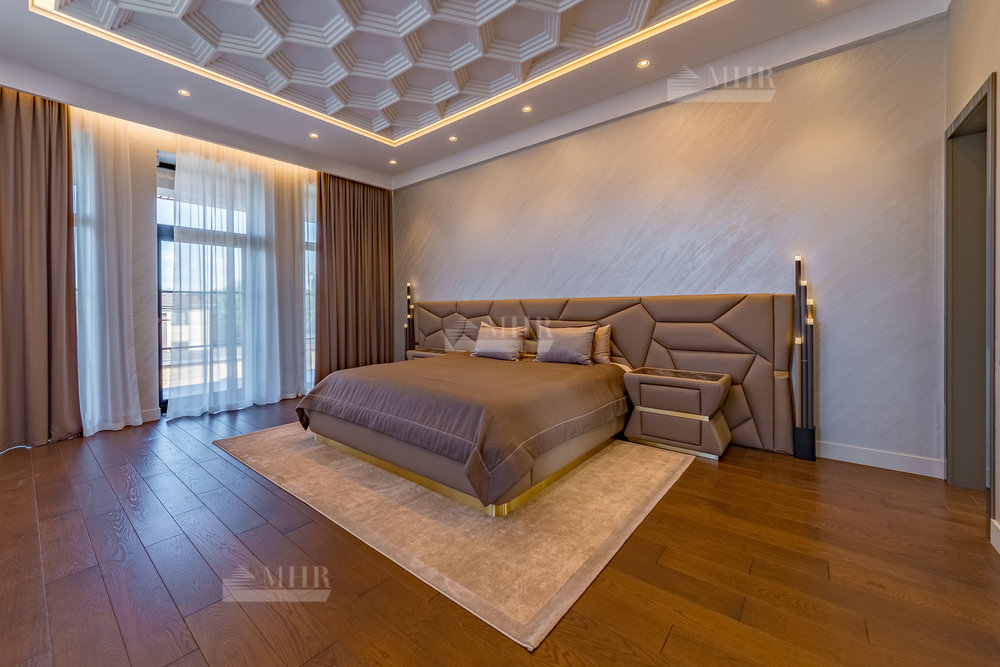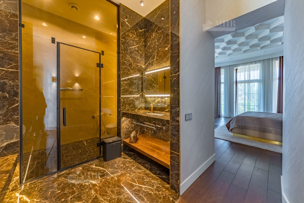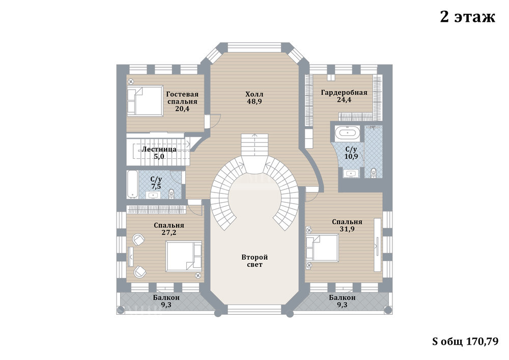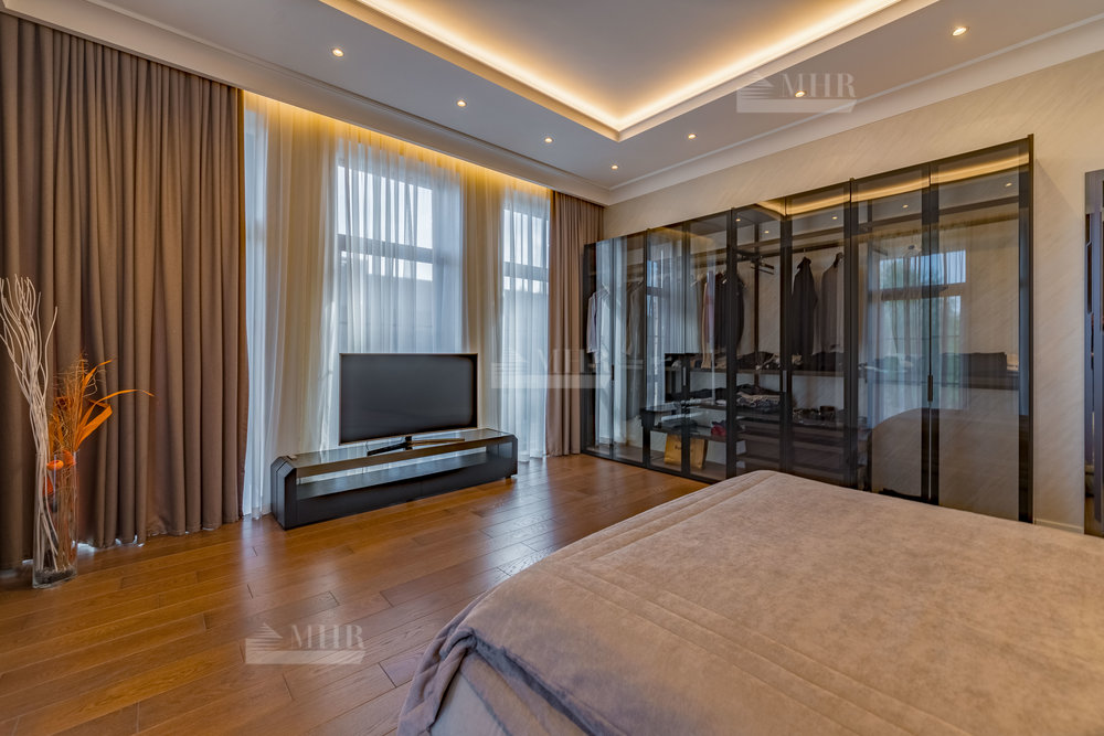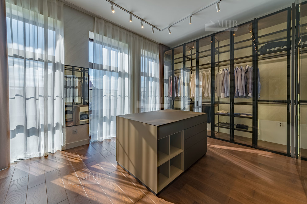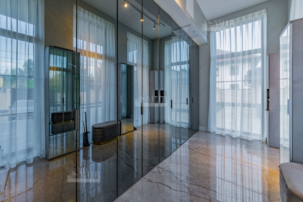 2 этаж:  холл, мастер-спальня с санузлом и гардеробной, 2 спальни с гардеробными, санузел;