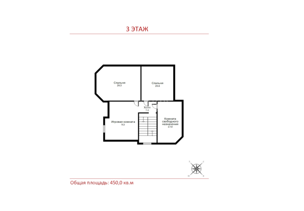 3 этаж: спальня, гардероб, ученическаяигровая, кладовая.