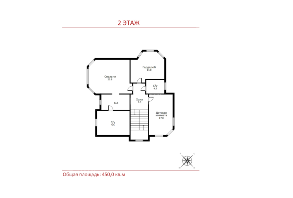 2 этаж: мастер-спальня с мужской и женской гардеробной, мастер-ванна, детская спальня, с/у;