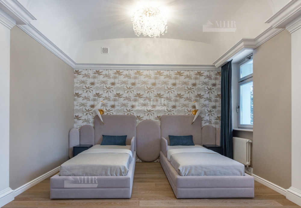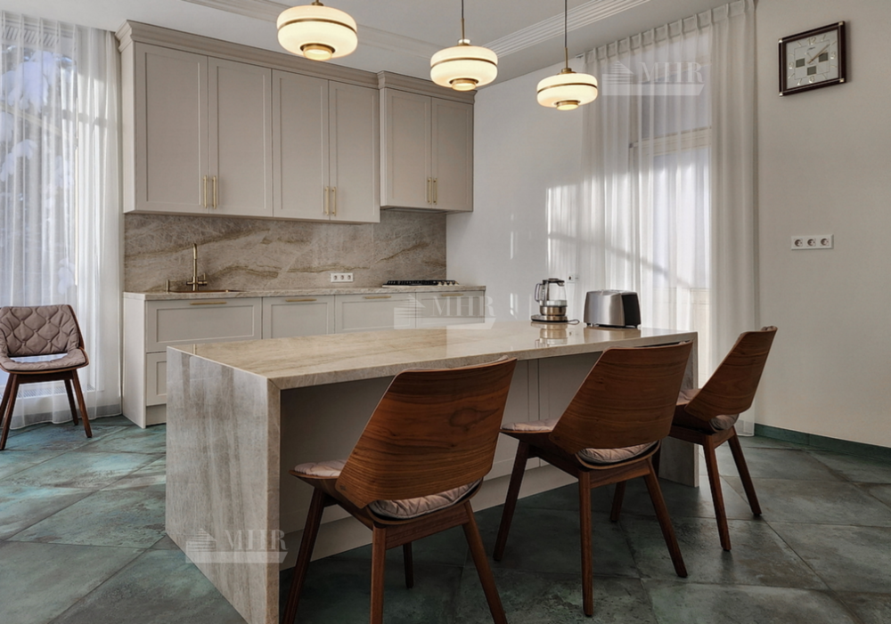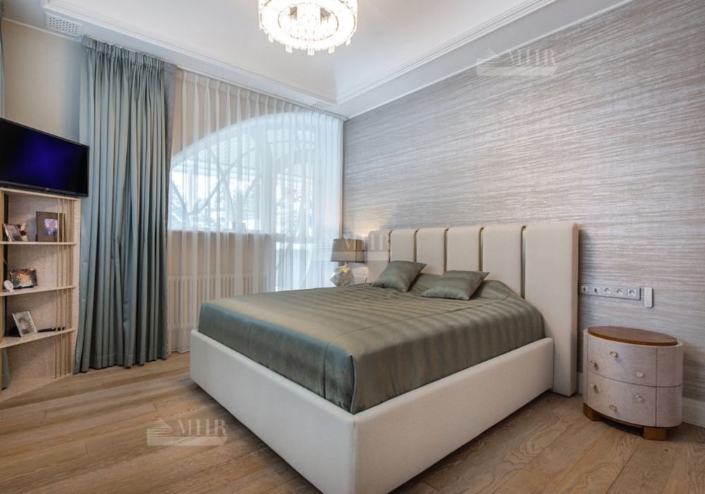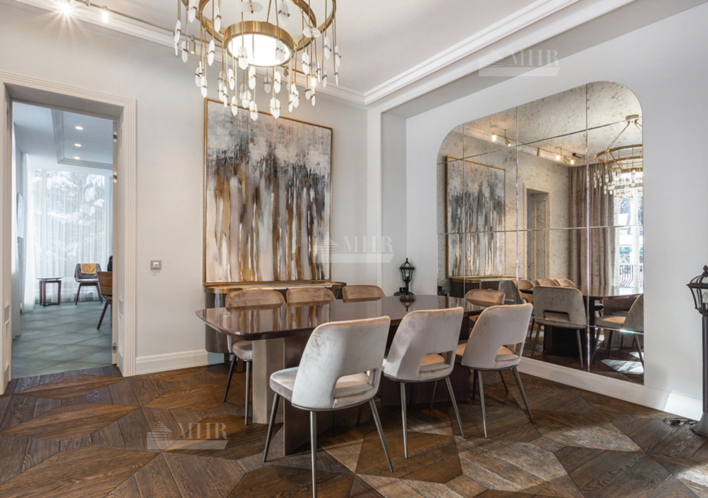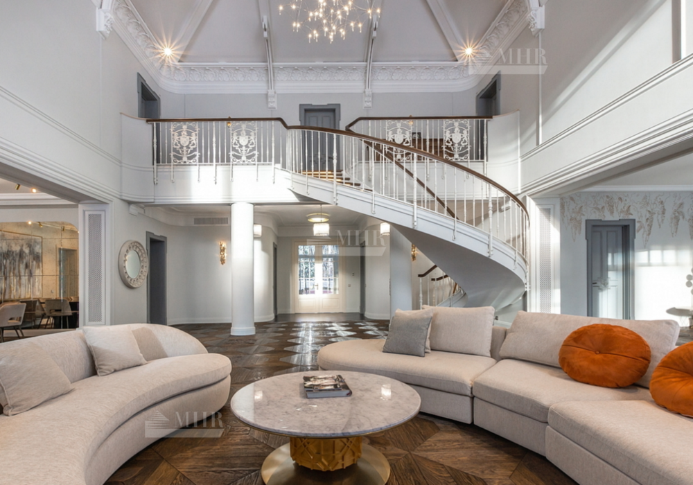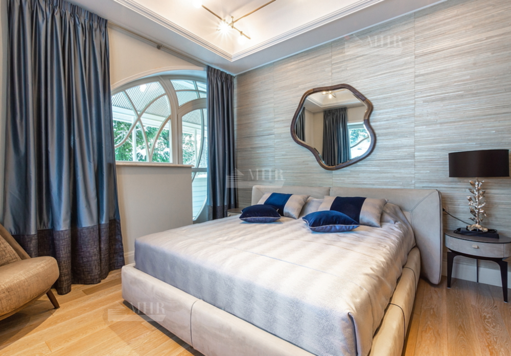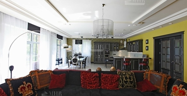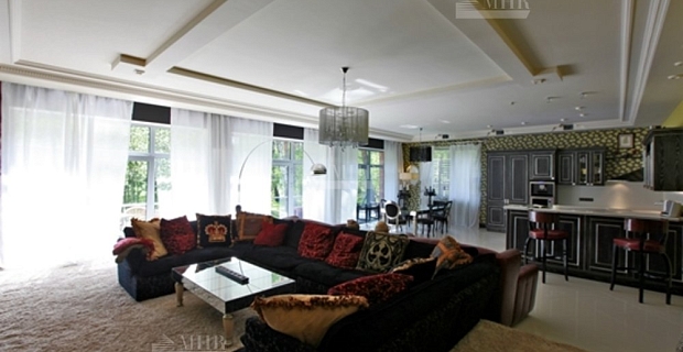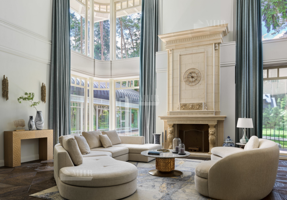 К продаже предлагается интересный дом с ажурными окнами, вторым светом, впечатляющей винтовой лестницей и камином из натурального камня. Дом имеет два этажа с центральным атриумом гостиной, которую отделили от остальных помещений витражными дверями. За ними в правом крыле расположились гардеробная, кухня, столовая и склад для хранения продуктов. С противоположной стороны — лаундж с музыкальной зоной, гостевая спальня, уголок с теннисным столом, бассейн, сауна и соляная комната. Приватный второй этаж занимают тренажёрный зал и три спальни с санузлами. Светлый уютный интерьер выполнен в стиле современной классики. В отделке и предметах интерьера использовались оригинальные материалы и сложные фактуры: натуральный камень, дерево, металл. Дом полностью меблирован и оснащен всей необходимой бытовой техникой. Мебель и техника от ведущих мировых производителей.