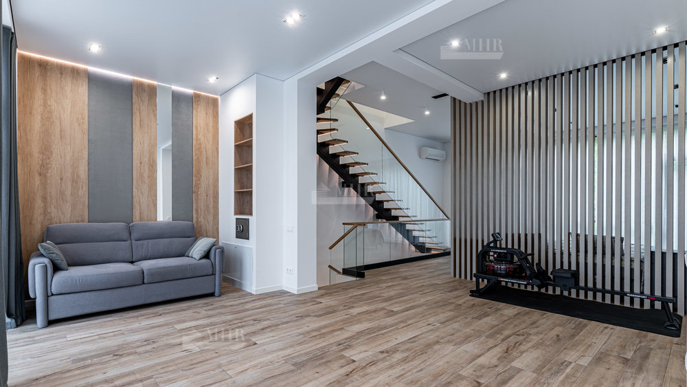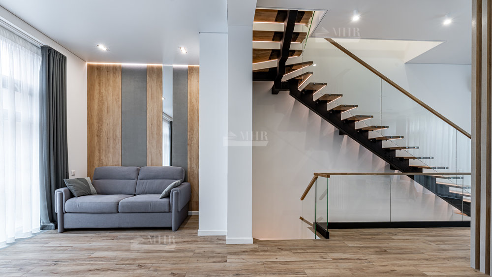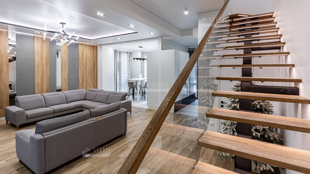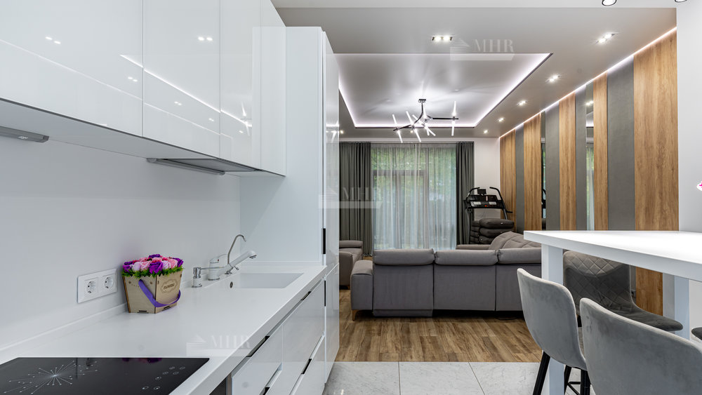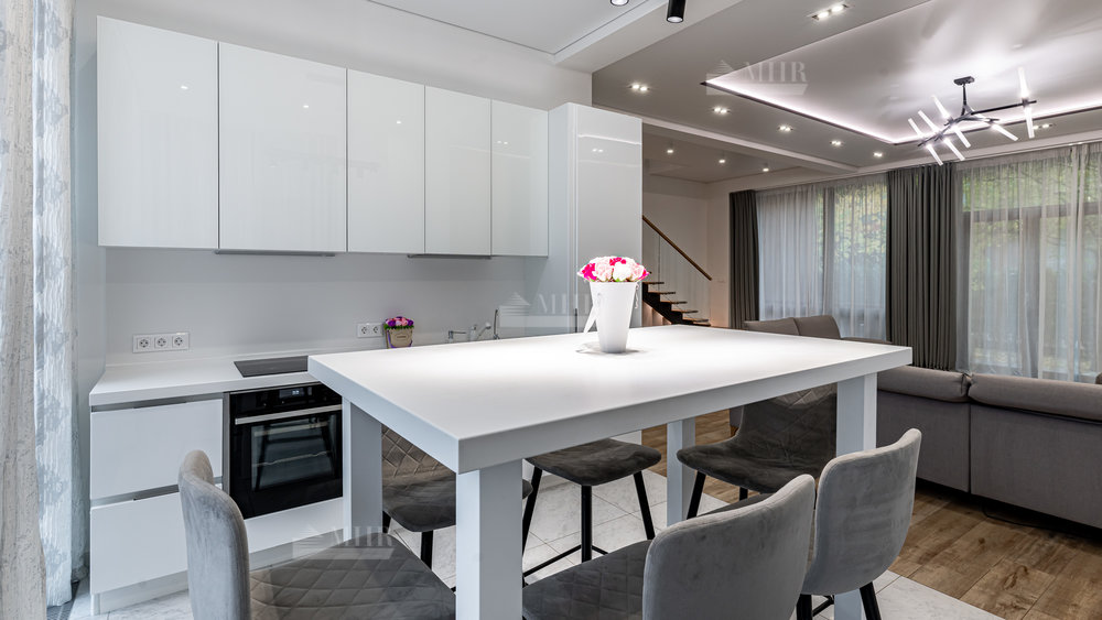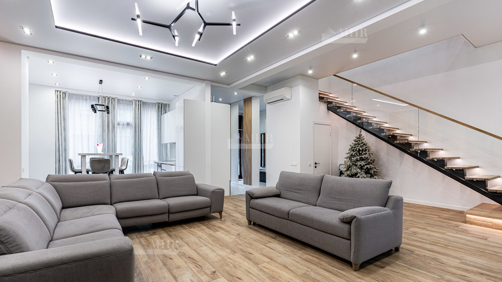 К продаже предлагается угловой таунхаус в современном стиле. В таунхаусе всё изначально делали для себя, уделяя пристальное внимание каждой детали. Стильный интерьер дополнен красивой мебелью. Любимым местом для душевных посиделок станет роскошная диванная группа бельгийской фирмы “rome 1961”. Один из диванов оснащён функцией "реклайнер", которая превращает сиденья в удобную наклонную поверхность. Второй диван оборудован итальянским раскладным механизмом. На втором этаже для гостей также предусмотрен раскладывающийся диван. А кровать-трансформер "Аскона" с ультрасовременным механизмом, с подсветкой и лучшим матрасом, оснащена массажёрами для максимального расслабления. Кухонный гарнитур и вся мебель представлена производителем "Стильные кухни". Кухня укомплектована премиальной бытовой техникой: индукционная плита, духовой шкаф, холодильник и морозильная камера - от немецкого бренда "Neff". Изюминкой таунхауса является остекление по всей ширине и высоте фасада. Панорамные окна делают дом очень светлым и просторным. Шторы-блекаут, пошитые на заказ из английских тканей, позволят высыпаться по утрам и отлично блокируют солнечные лучи. На всех этажах предусмотрены теплые полы.