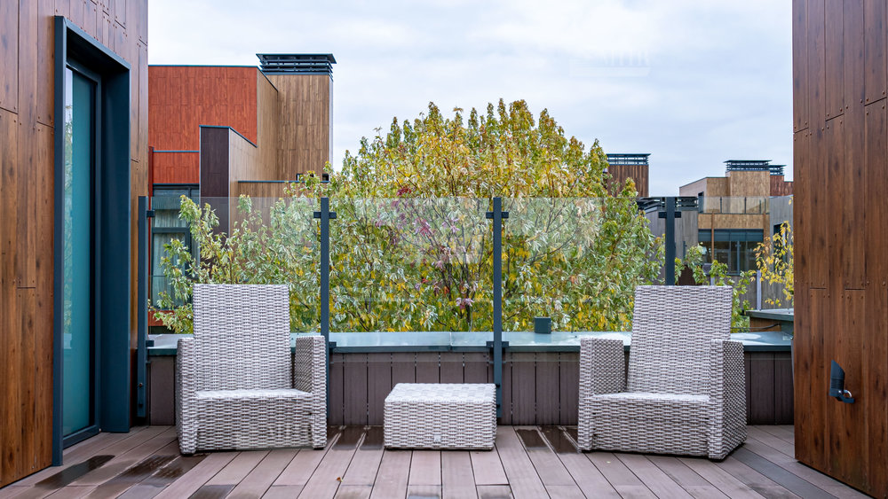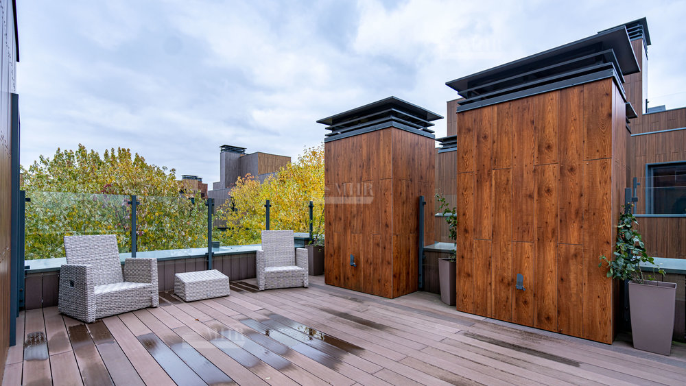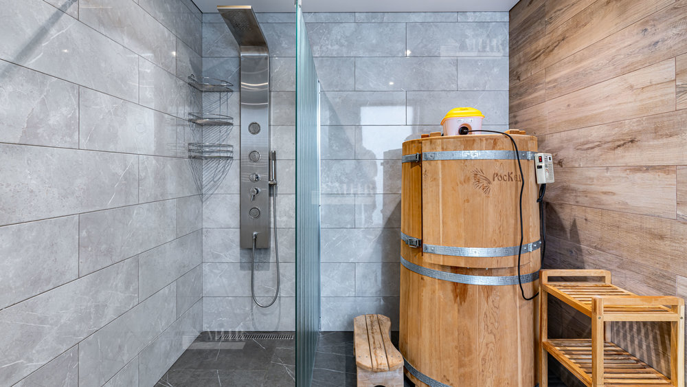 3й этаж: душевая кабина и дубовая бочка для СПА, выход на экспортируемую крышу, где можно поставить шезлонги и организовать зону отдыха на свежем воздухе.
