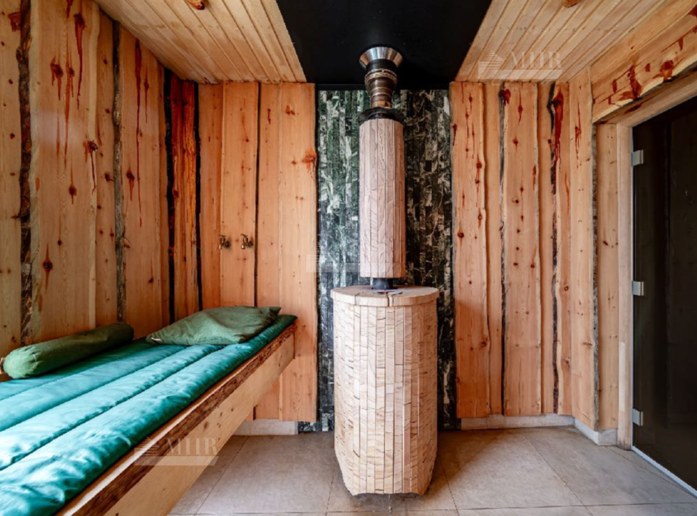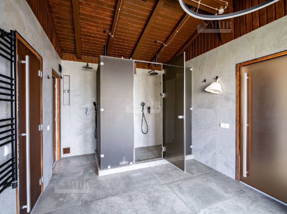 На участке находится гостевой дом с баней: холл, кухня-столовая-гостиная с выходом на улицу, раздевалка, СПА- зона, парная, санузел, техническое помещение.
