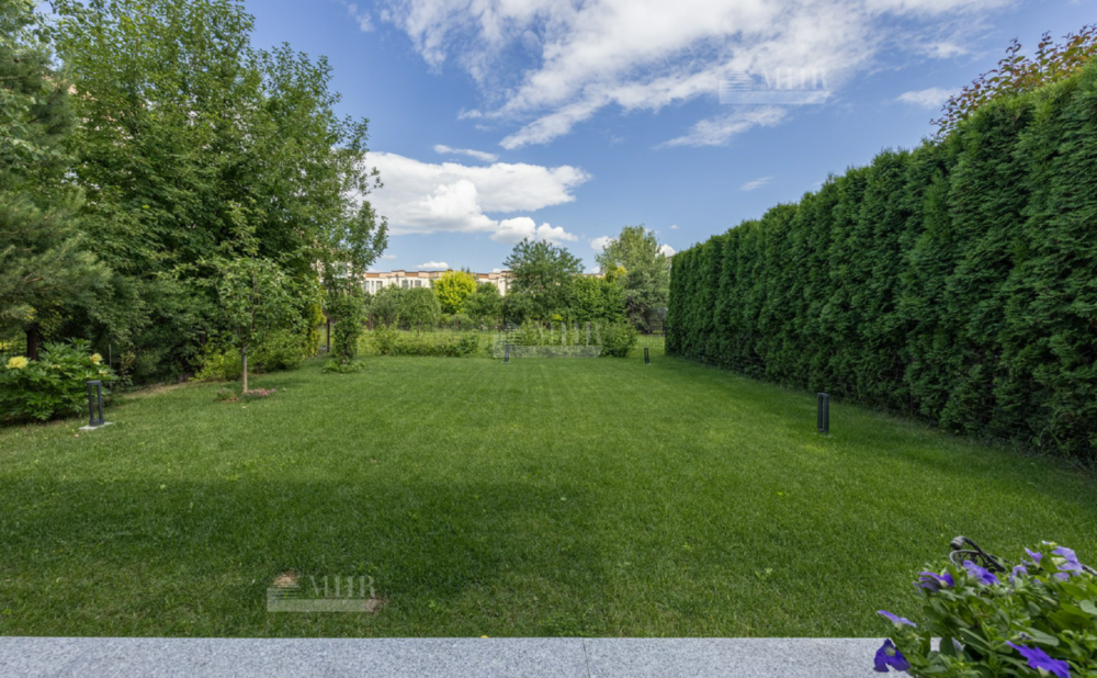 На участке выполнен красивый ландшафтный дизайн( выстелен газон, высажены туи и крупномеры по периметру забора, что обеспечивает максимальную приватность).