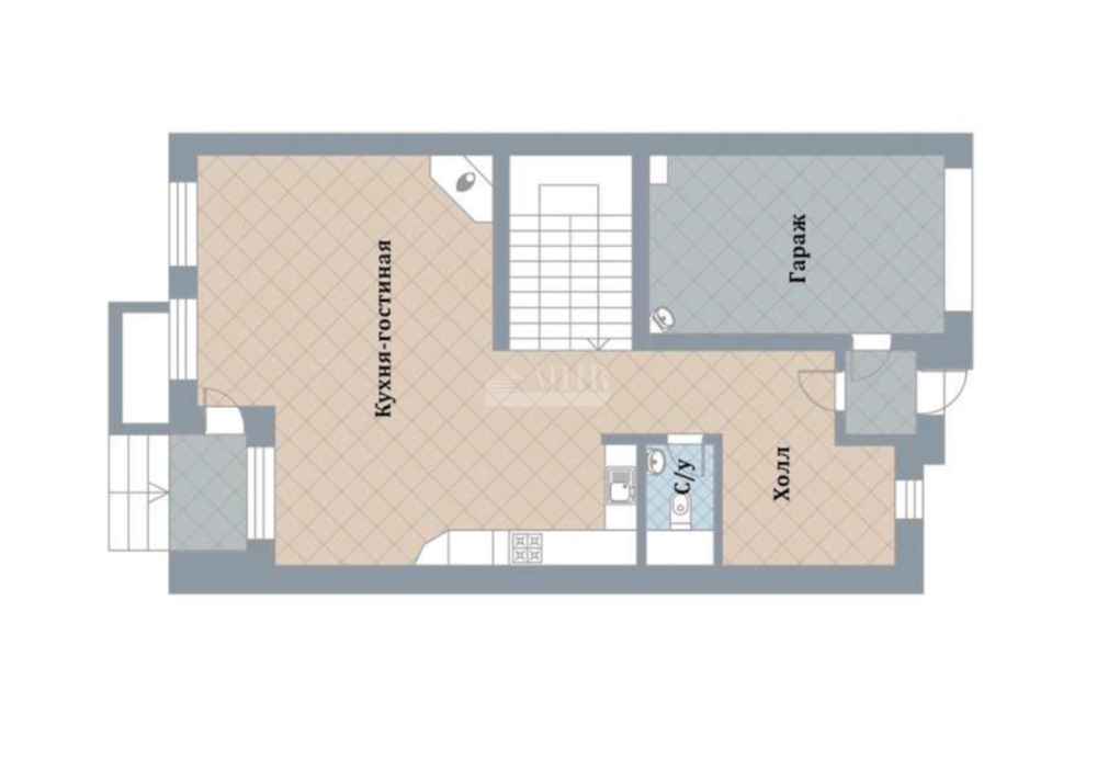 1-й этаж: гараж на 2 м/м, холл, с/у, кухня-гостиная;