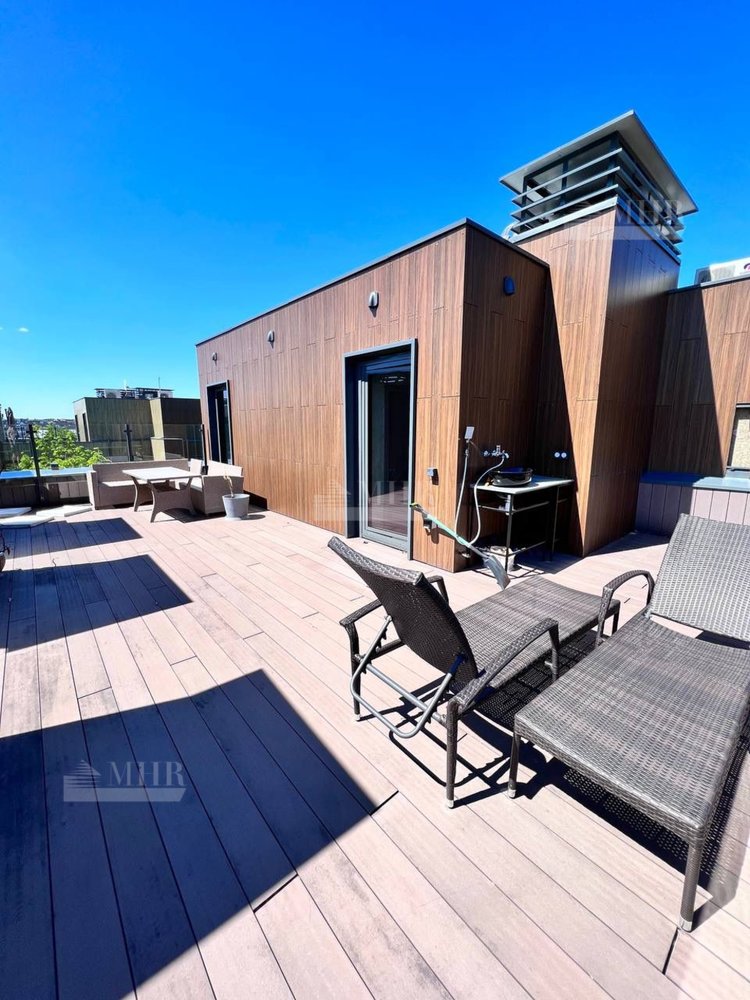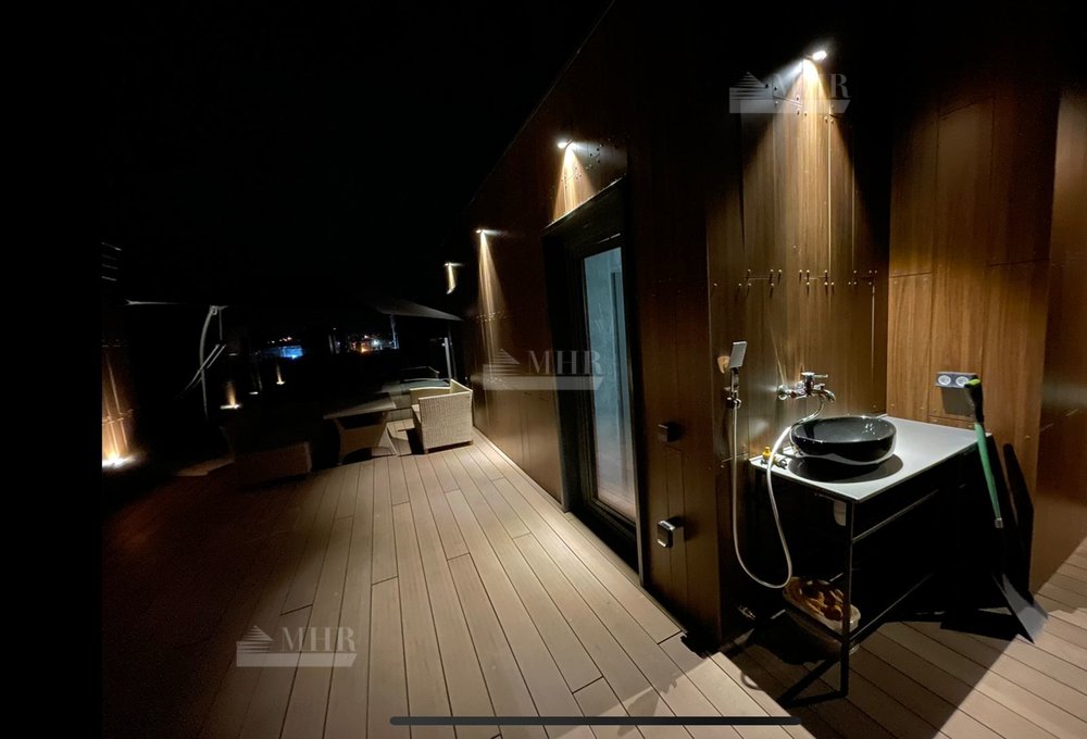 3 этаж: постирочная, санузел с раковиной и писсуаром, подсобным помещением и выходом на полностью оборудованную крышу (выведена летняя вода, душ, лежаки, мебель, солнцезащитный зонт).