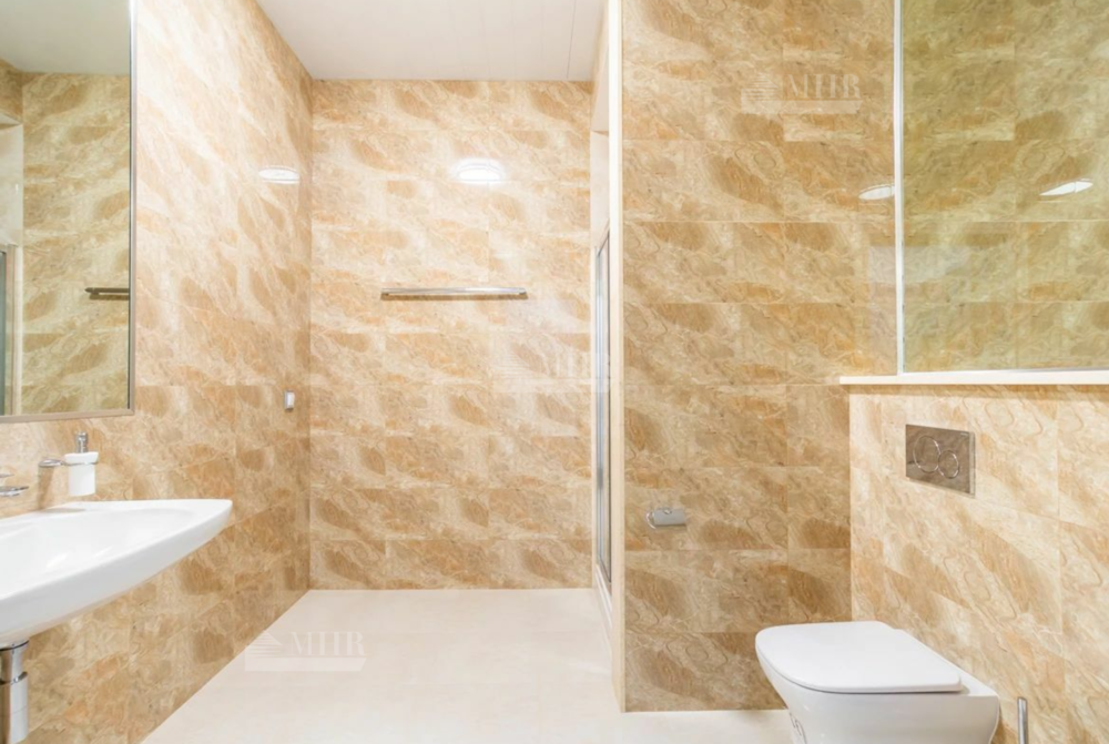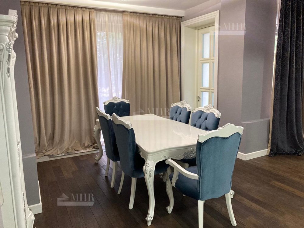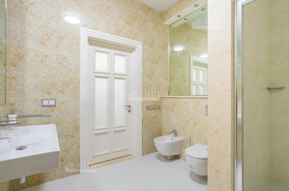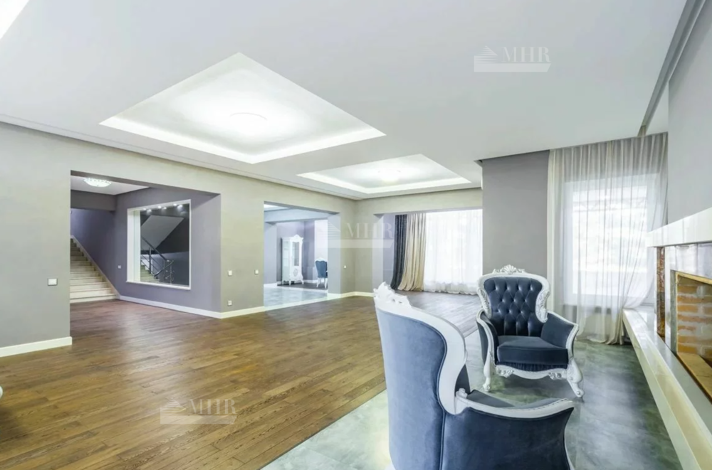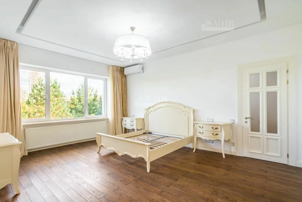 В доме 2 этажа + цокольный, 4 спальни, каждая со своим санузлом, этажи соединяет мраморная лестница с подсветкой. На цокольном этаже находится котельная (немецкая техника WOLF), 1 комната с совмещенным санузлом, прачечная и гостевой санузел. На первом этаже гостиная + кухня, камин, выход на задний двор и веранду. Антресоль 1 этажа - 2 спальные комнаты с санузлами. На втором этаже 2 двойные спальные комнаты со своими санузлами. На мансардном этаже оборудована кладовая.