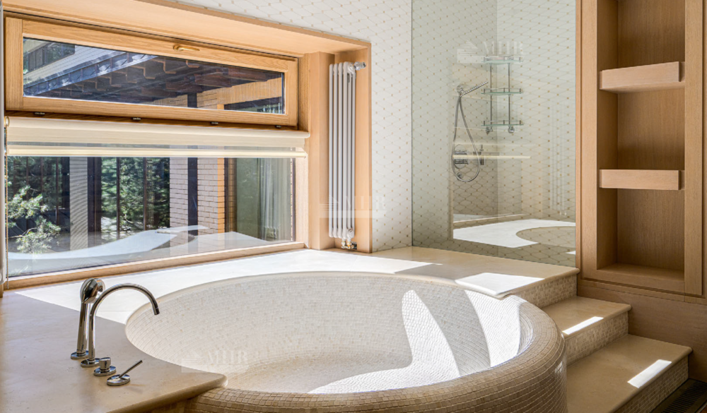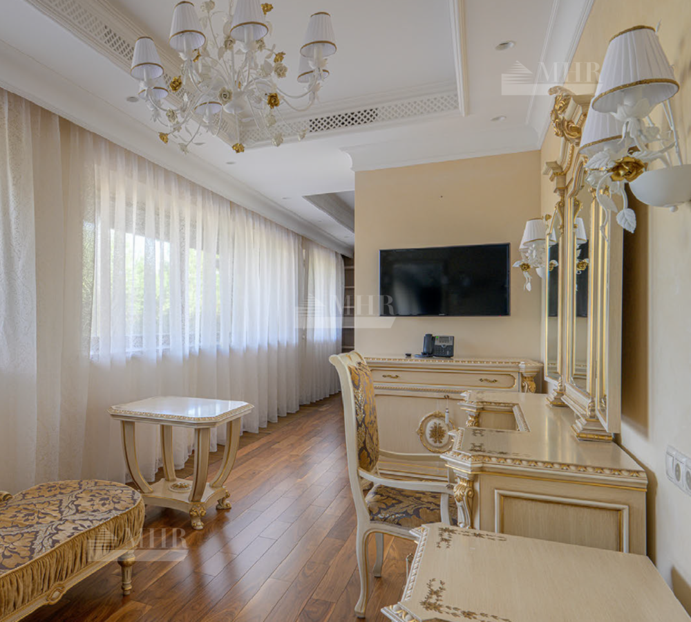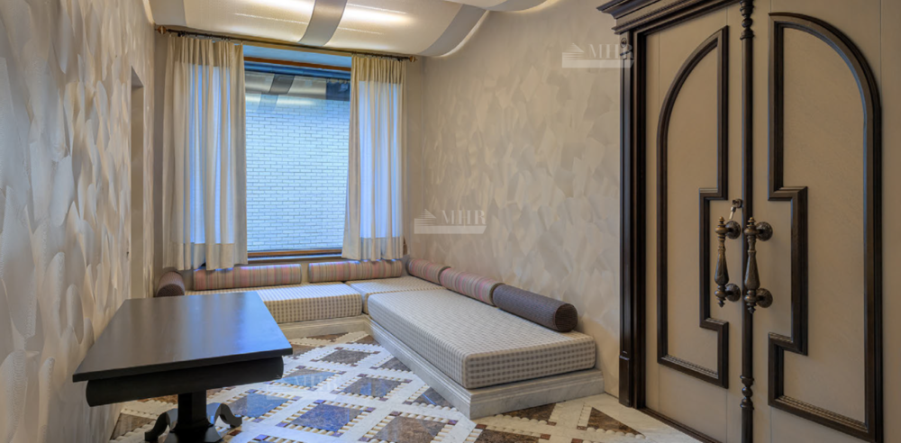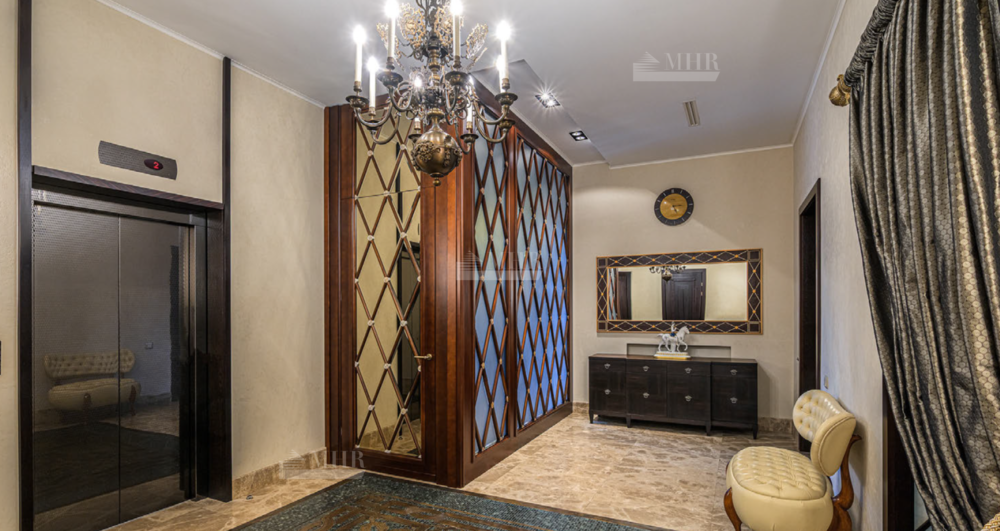 Цоколь: винный погреб, мастерская, зона барбекю, постирочная, блок персонала с 6 спальнями, кухней, гардеробной, постирочной персонала, душевыми, 3 с/у, коридором и выходом на террасу, технические помещения-котельная, электрощитовая, вентиляционная, прочие помещения.