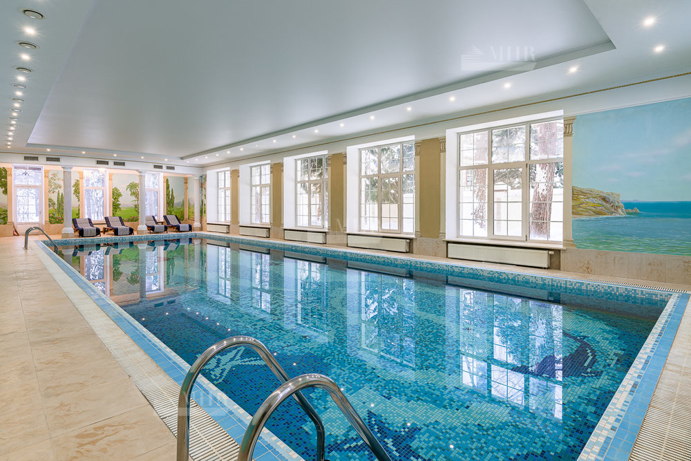 На первом уровне предусмотрены все необходимые для комфортного проживания владельцев помещения: парадный двусветный холл, просторная гостиная с камином и обеденной зоной, полностью оборудованная кухня, гостевая спальня и СПА-зона с хаммамом, сауной, и великолепным бассейном длиной 18м.