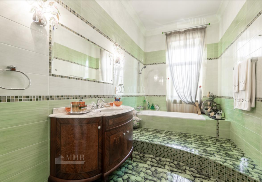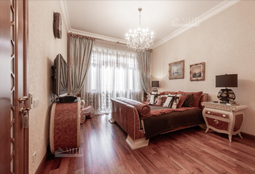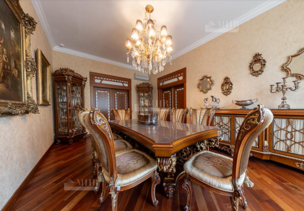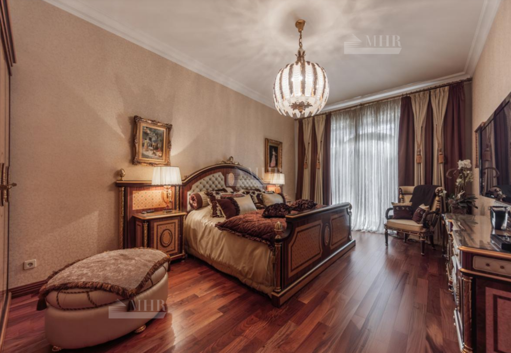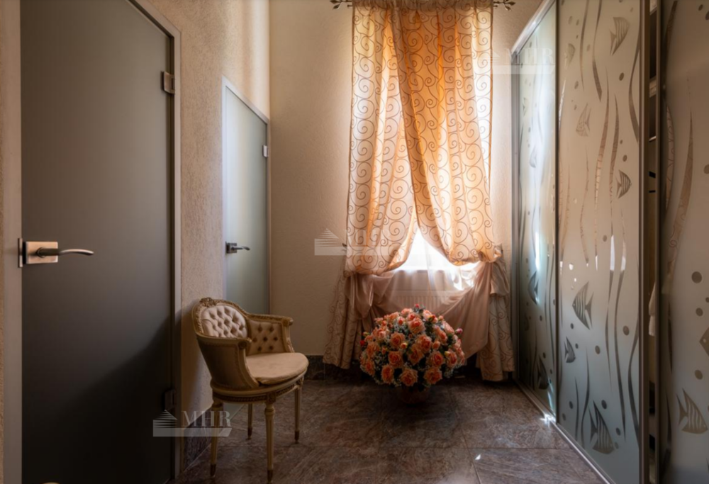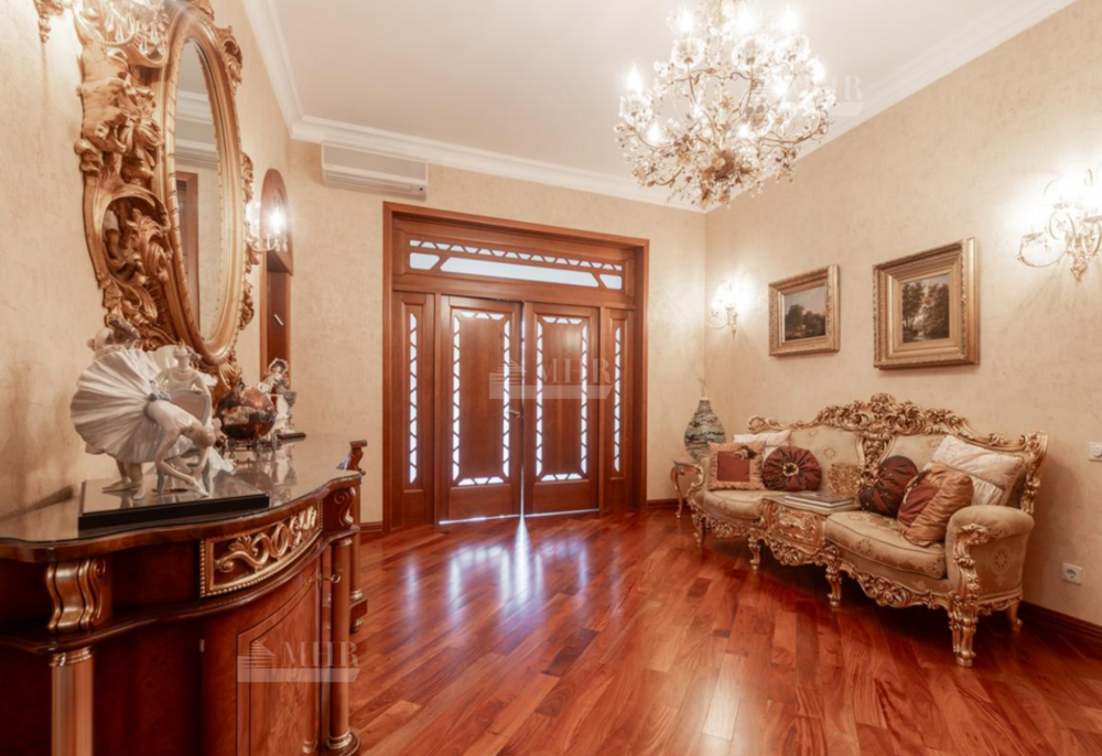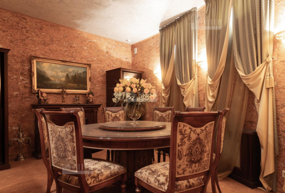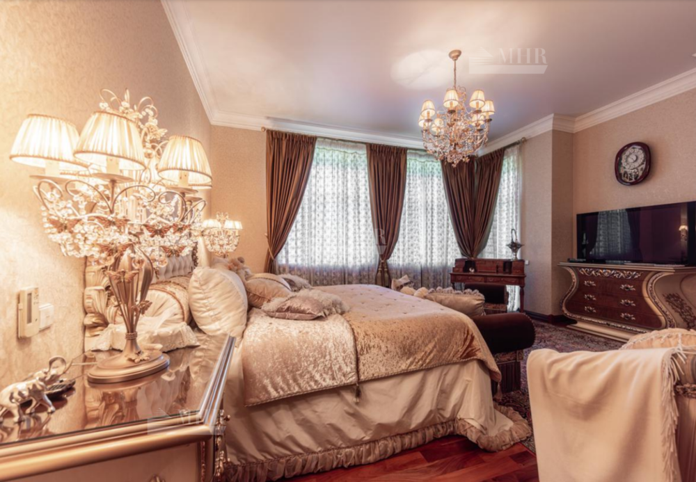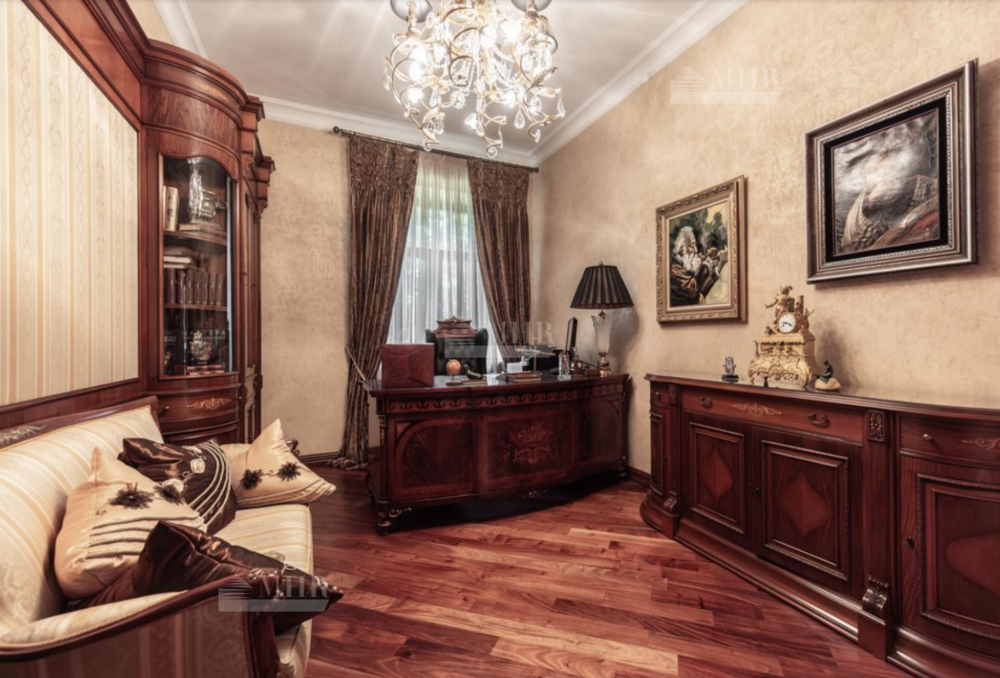 Резиденция находится в идеальном состоянии и украшена редкими антикварными вещами, в частности, из коллекции Фаберже и именными картинами. На цокольном этаже размещены, спортивный зал, кинотеатр, зона отдыха с бильярдной, баром и сигарной, санузел, комната для помощника с санузлом, гардеробом и спальней, кладовая, котельная, чаша бассейна. На первом этаже находятся холл, гардеробная, кабинет, гостиная с камином и выходом на террасу, столовая, санузел, зона SPA с душевой, раздевалкой, сауной, бассейном длиной 12 метров, хаммамом. Второй этаж включает хозяйский блок, гостевой блок и две спальни.