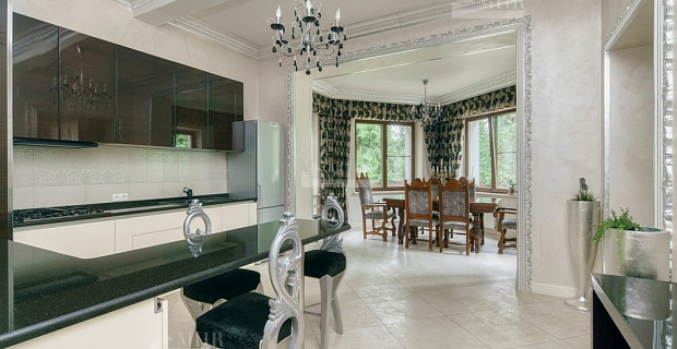 Отделка дома выполнена высококачественными материалами, а редкие предметы декора и уникальная мебель, выполненная на заказ, подчеркивают индивидуальный стиль интерьера.