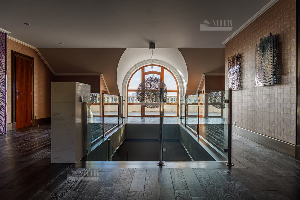 2 этаж: холл, хозяйская спальня с 2-мя гардеробными и ванной комнатой, кабинет, лифт, спальня с с/у, спальня с с/у и гардеробной, спальня. Двухкомнатная квартира для персонала над гаражом;
