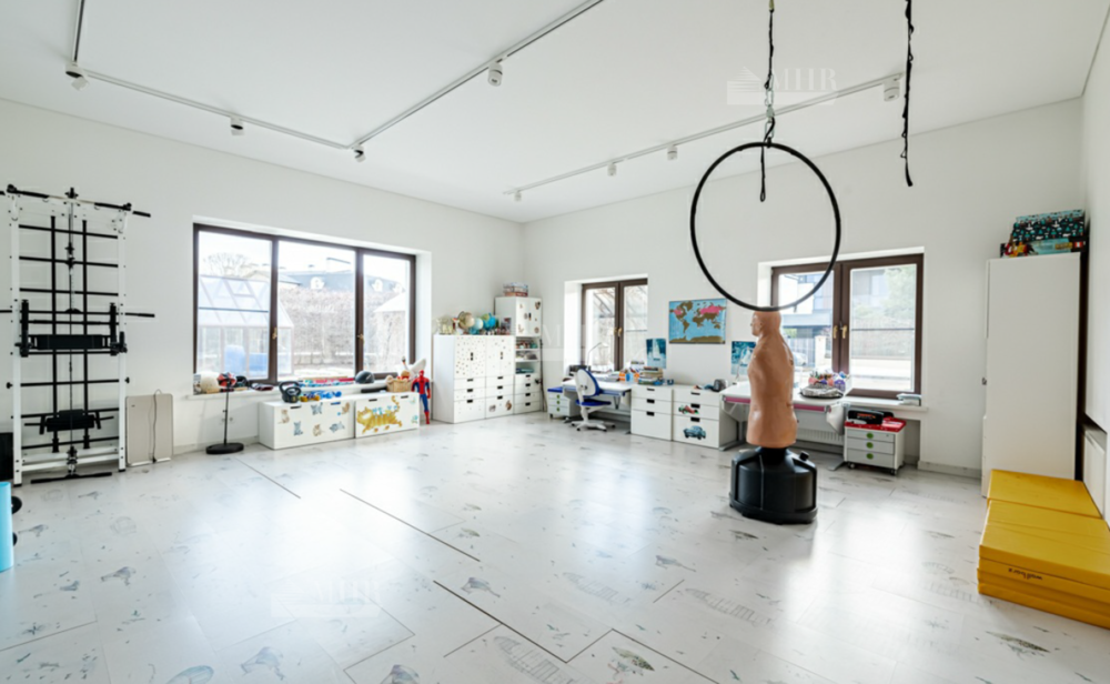 1-й этаж: холл, гостиная со вторым светом и камином, столовая с выходом на застеклённую террасу, кухня, спальня с собственной ванной комнатой, спортзал-игровая, гостевой с/у, тех. помещение;