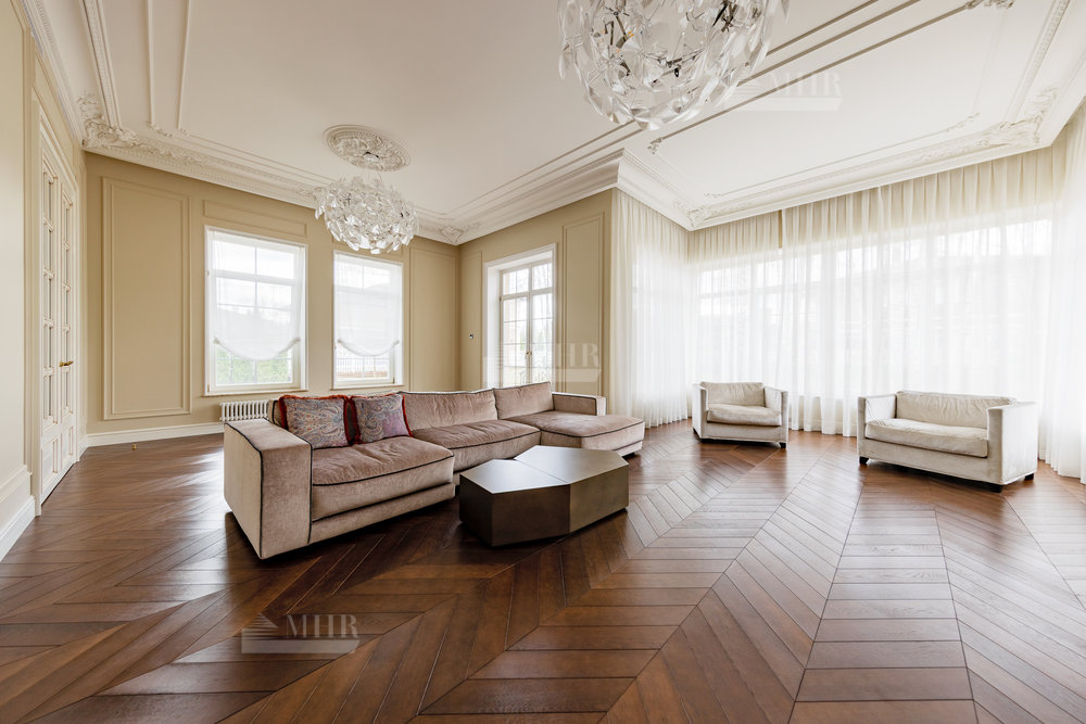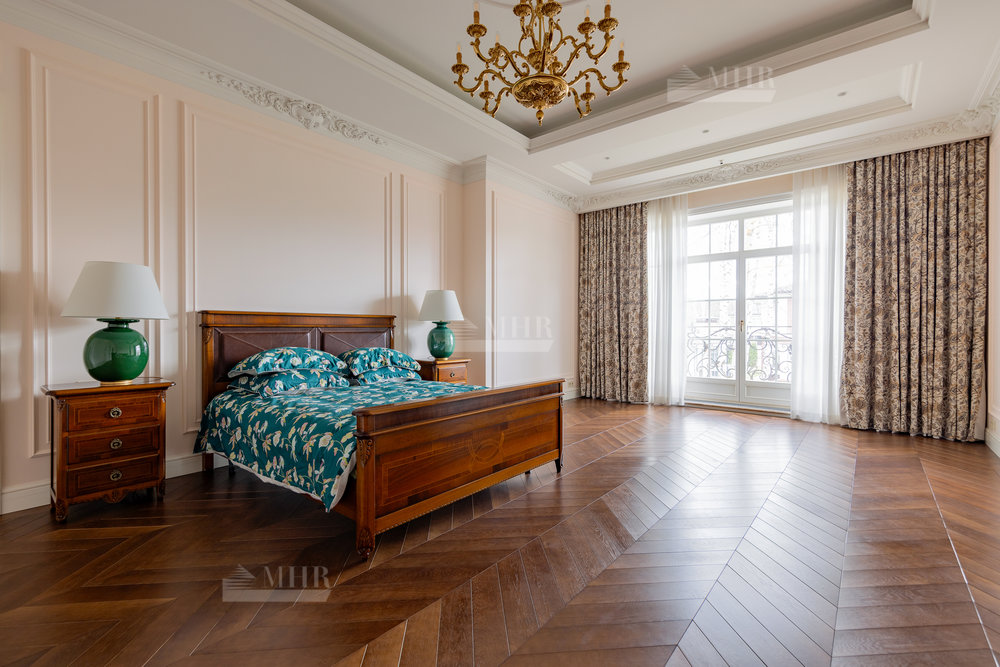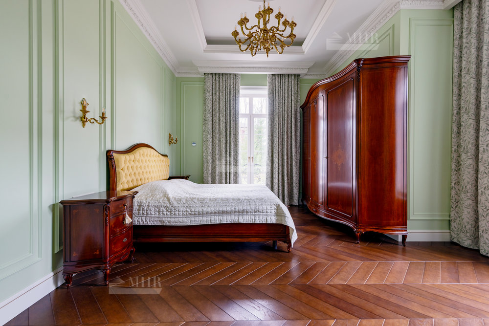 Интерьер в классическом стиле с элементами эклетики, со вкусом подобранная мебель и предметы декора, планировка с максимальным уважением к личному пространству каждого члена семьи, гостей дома и обслуживающего персонала.