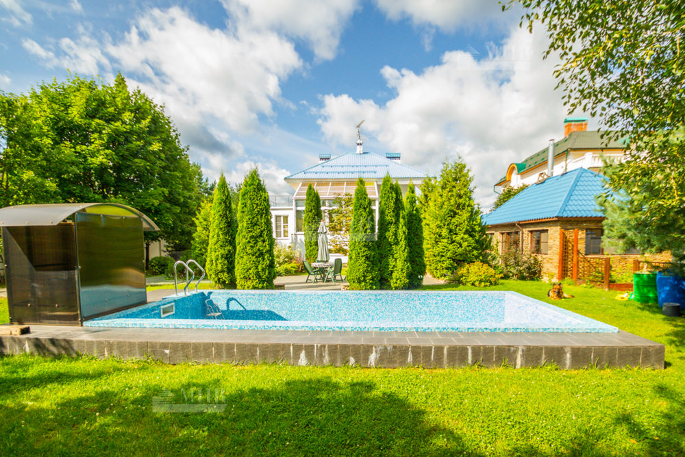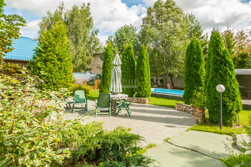 Ухоженный участок с лесными деревьями. На участке открытый бассейн, беседка с барбекю, котельная.