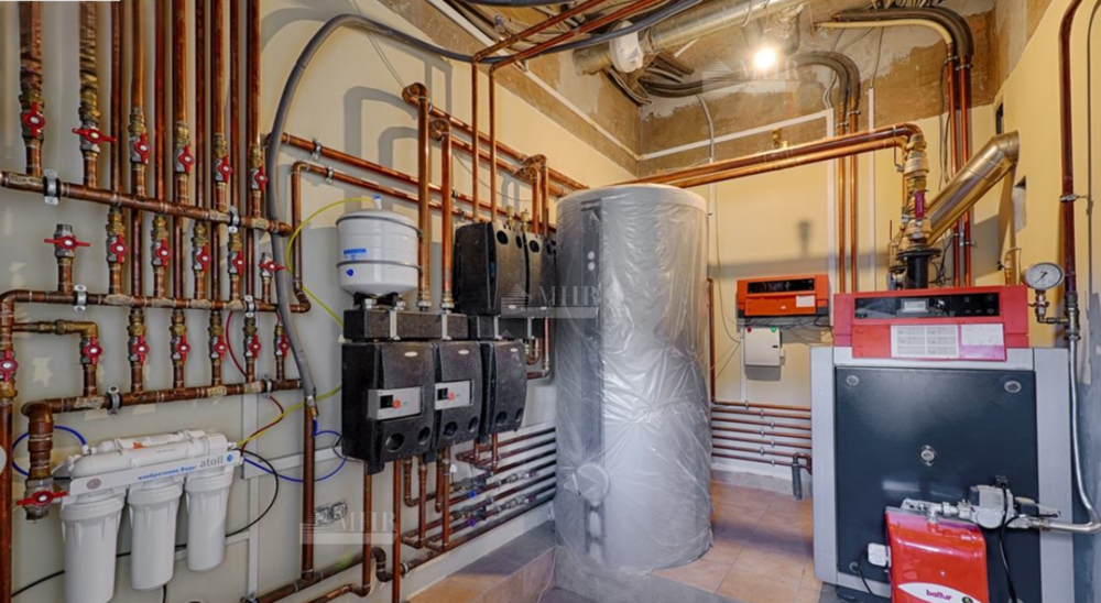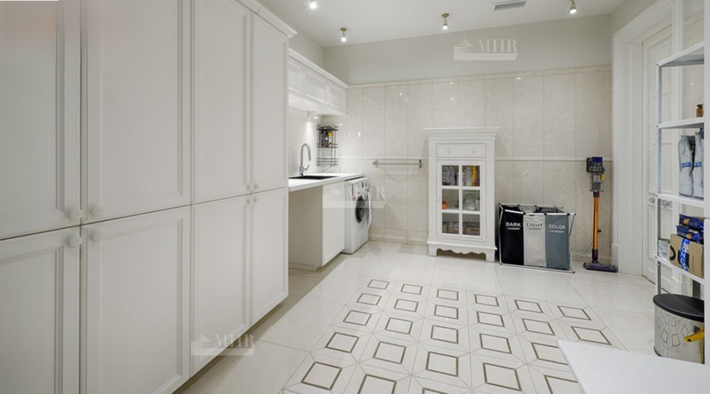 1-й этаж: терраса, салон-библиотека, кабинет, холл, кухня-столовая, гостиная, санузел, прачечная, вентиляционная, тамбур, гардеробная, котельная, гараж;