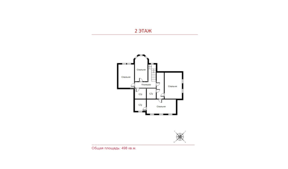 2 этаж: холл, 2 спальни, су, 2 спальни со своими с/у.