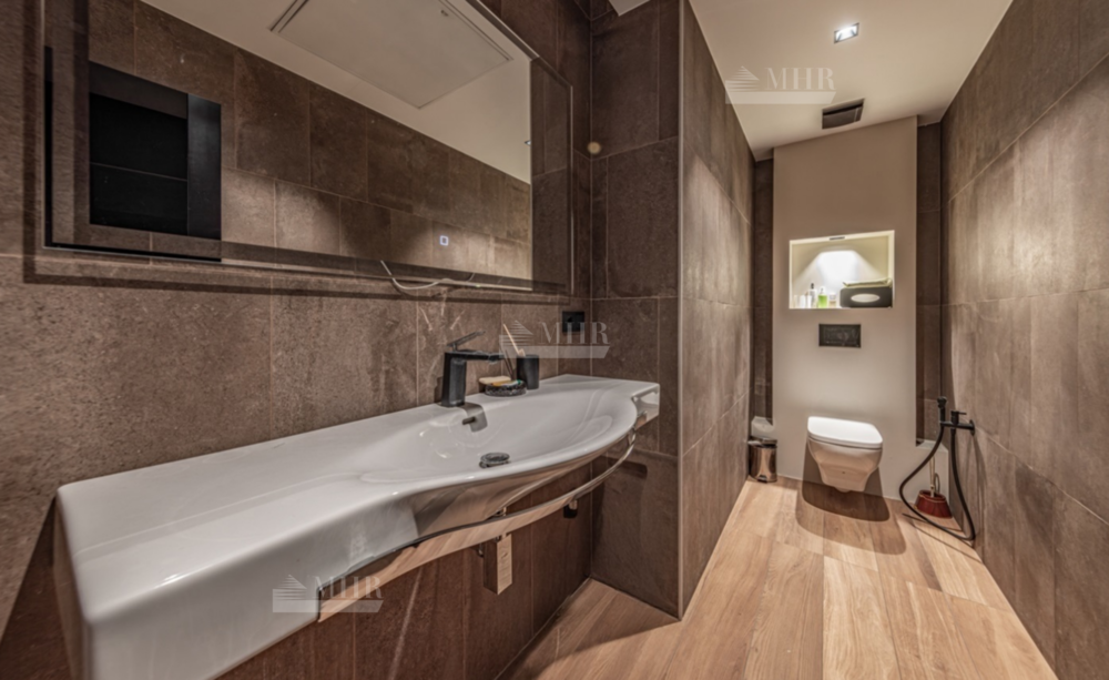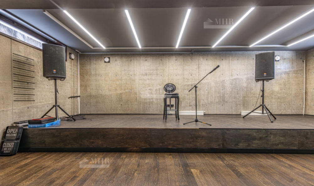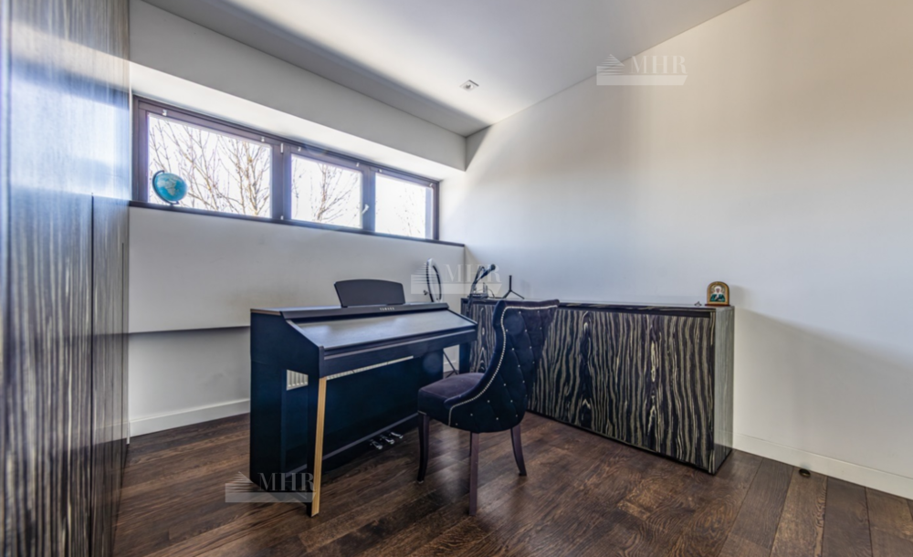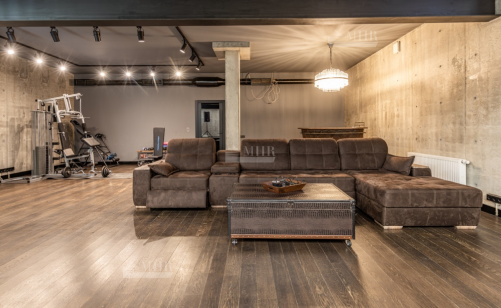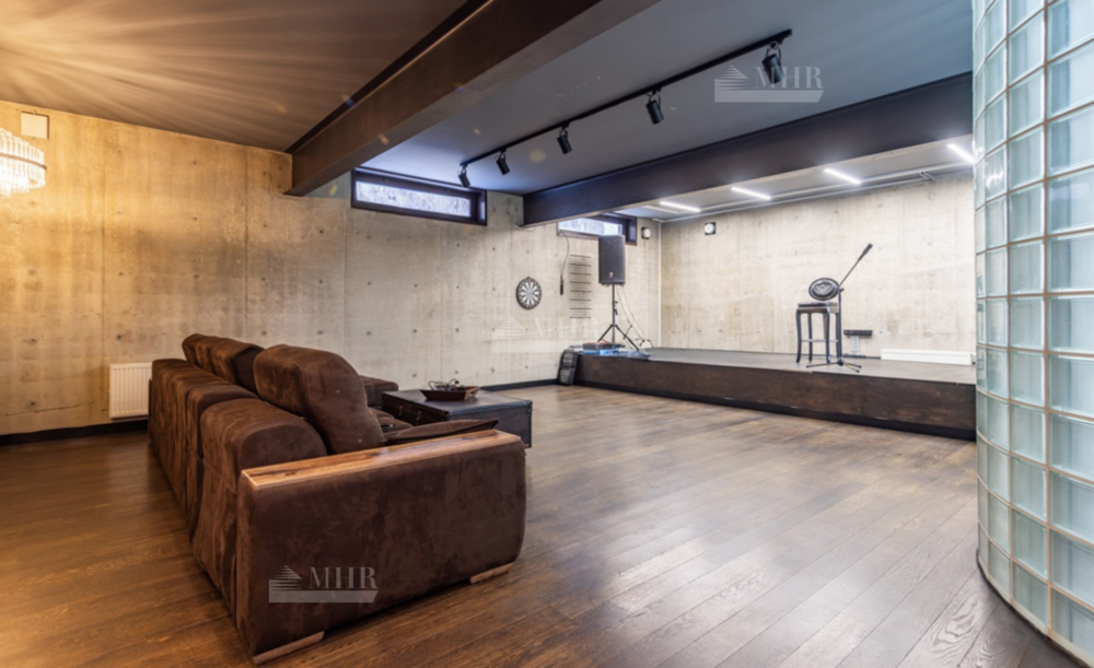 Цоколь: большой зал в стиле лофт со сценой и музыкальным оборудованием, домашний спортзал, спальня, сауна, хаммам, душевая, постирочная, санузел.