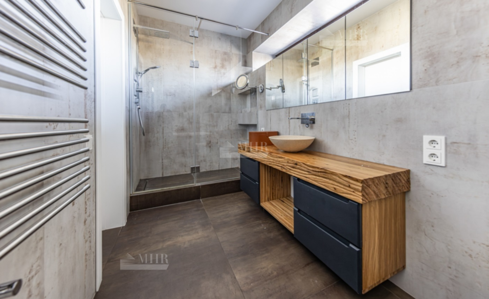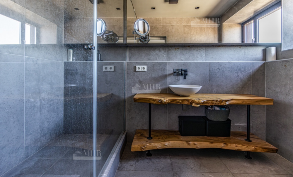 2-й этаж: 2 спальни со своим санузлом, спальня, гардеробная, санузел, кабинет с библиотекой.