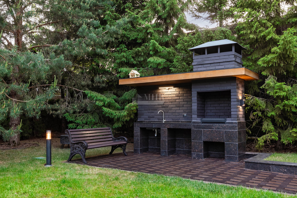 На территории обустроена зона барбекю. Предусмотрена парковка для трёх автомобилей.