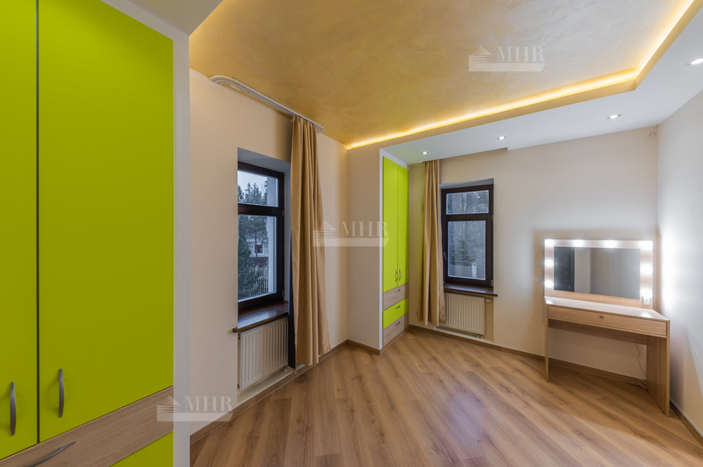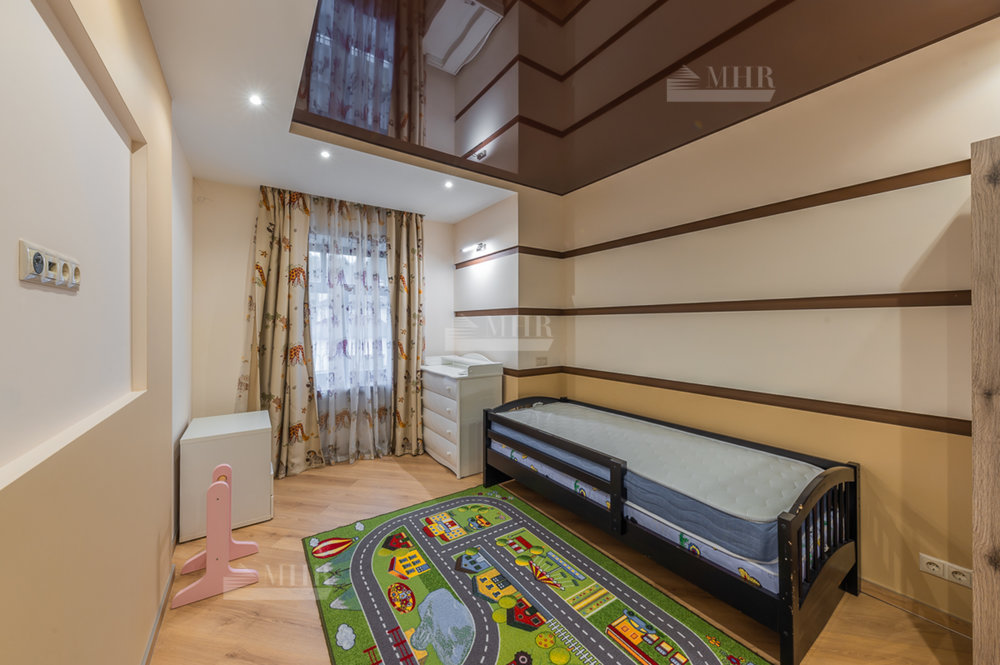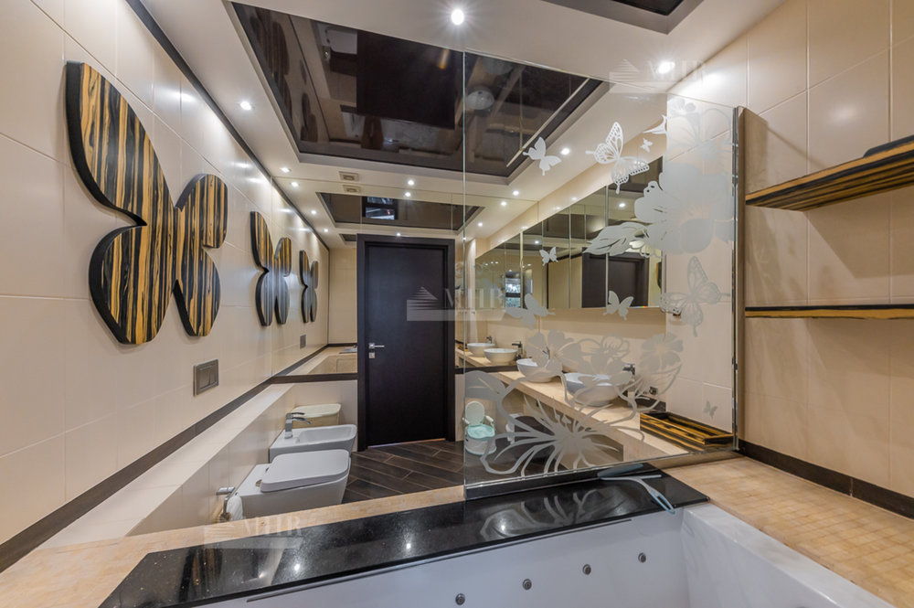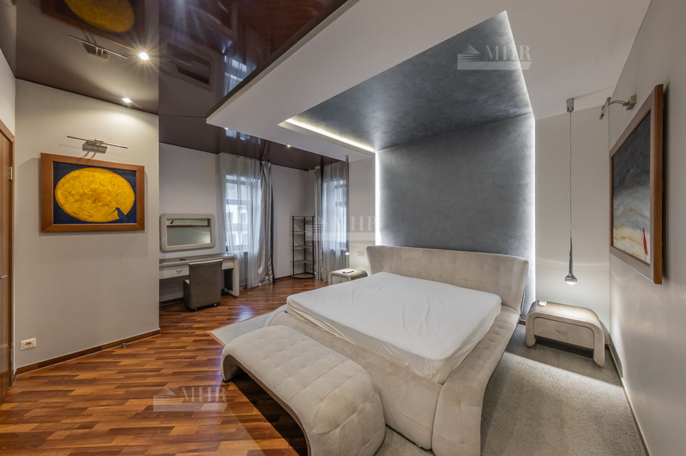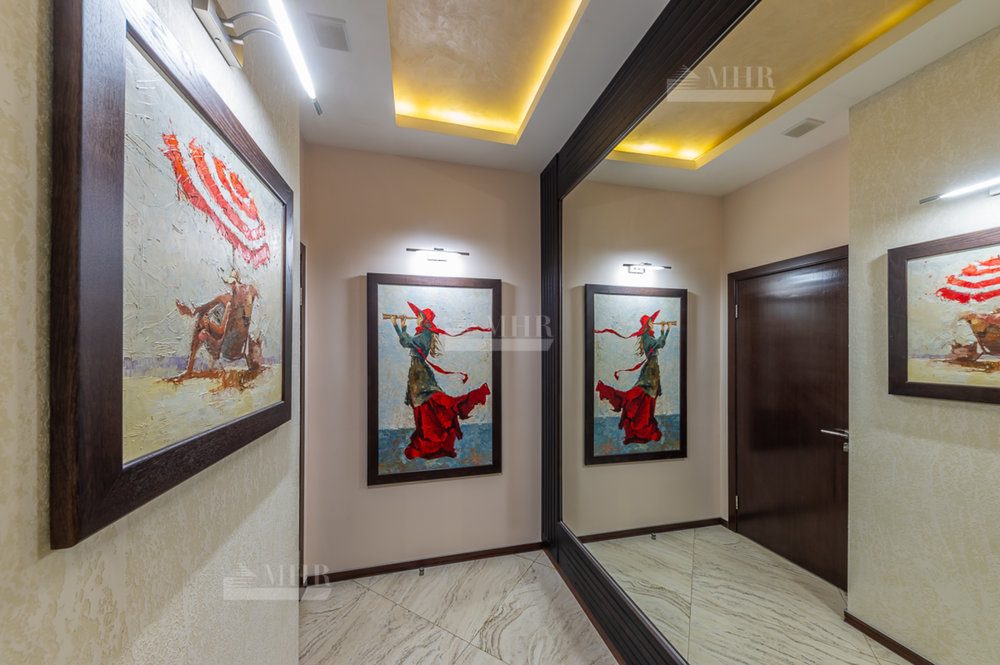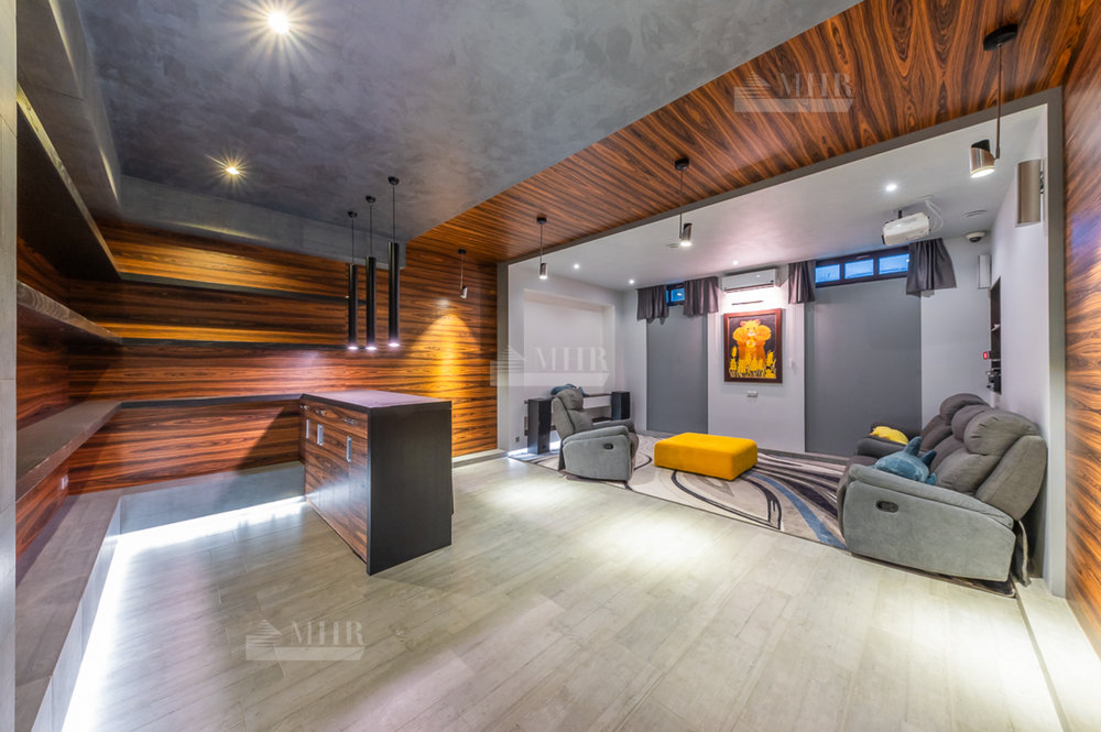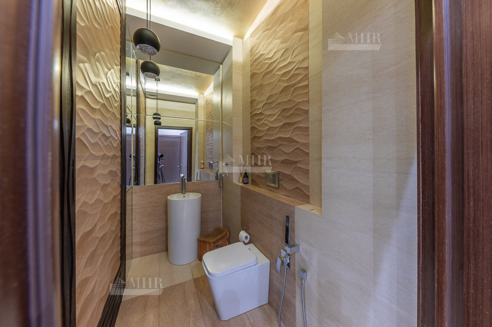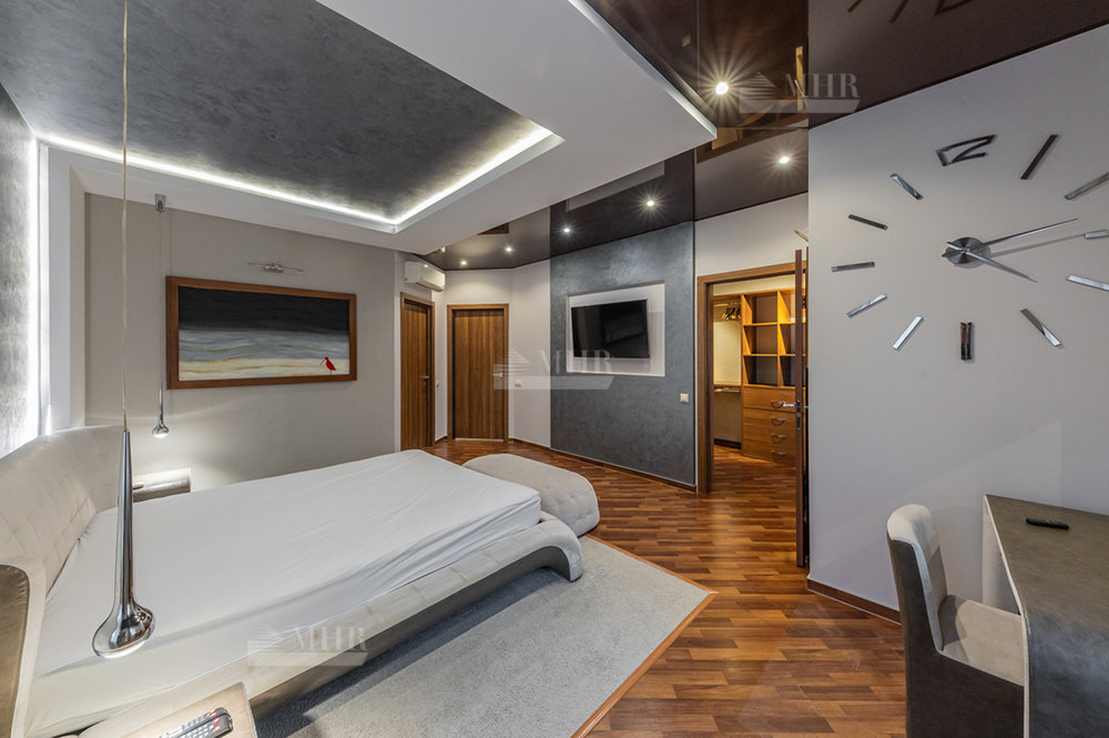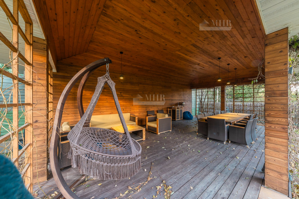 Четырёхуровневый дом в закрытом охраняемом посёлке с хорошей инфраструктурой. Расположен на тупиковой улице, примыкающей к лесу. Полностью меблирован и готов к проживанию. Высокие потолки. Из гостиной выход в зимний сад. Бар и тренажерный зал. Современный ремонт с использованием натуральных материалов: мрамор, дерево. Есть помещение для персонала. Охранная сигнализация, система видеонаблюдения. В котельной оборудование Buderus с обвязкой медью.