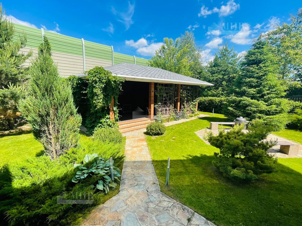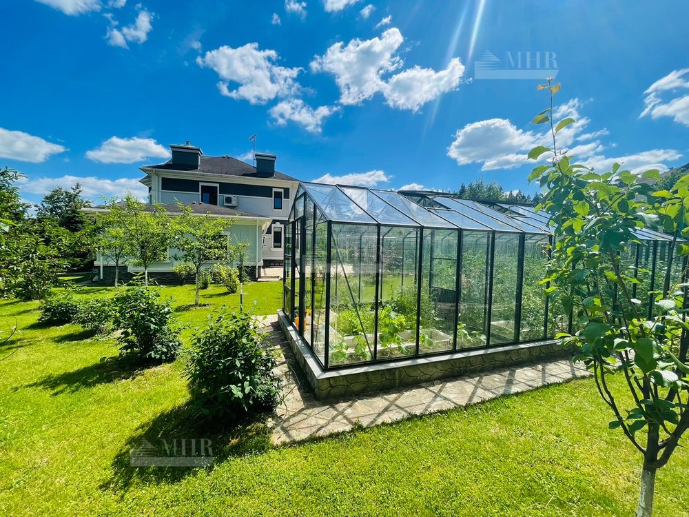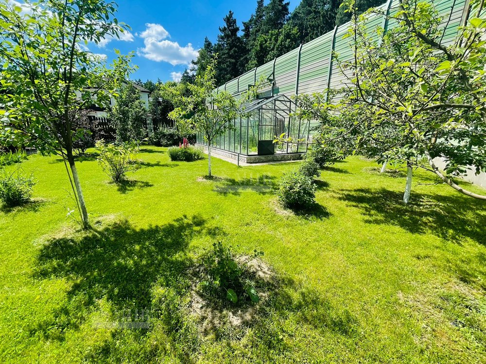 Прилесной ухоженный участок с  ландшафтным дизайном. На участке взрослые деревья. Летняя терраса 60 м2. Теплица 25 м2 с системой вентиляции, автополива, водой и электричеством. Система полива участка и деревьев. Подсветка участка и деревьев. Гараж на два автомобиля. Ливневая канализация. Все дорожки выложены из брусчатки. Есть площадка на два автомобиля.