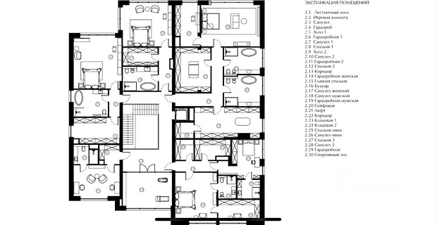 2-й этаж: две спальни, с/у, мастер-спальня с гардеробной и с/у.