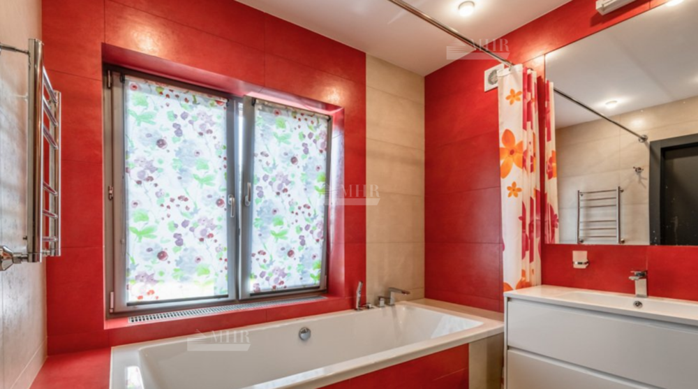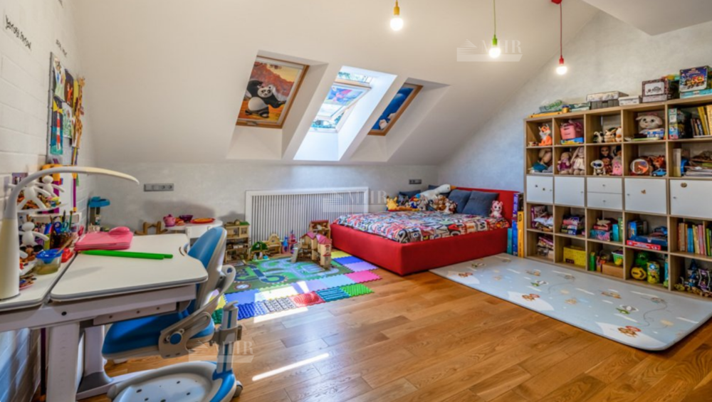 2-й этаж: мастер-спальня с собственной ванной комнатой( ванна и душ), гардеробной и окном в санузле, детская спальня, зонированная на игровую и спальную части, с отдельной ванной комнатой, дополнительная спальня с собственным санузлом и ванной.