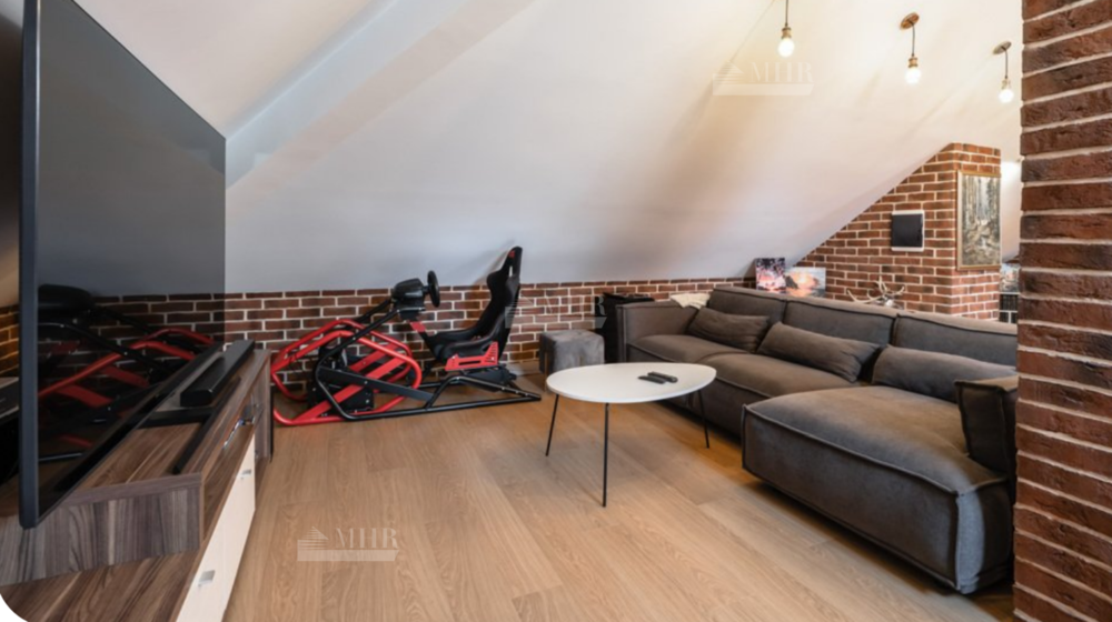 Мансарда: просторное открытое пространство: кухня, домашний кинотеатр или свободная планировка, отдельная спальня с санузлом.