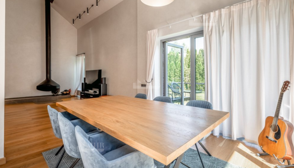 1-й этаж: просторная кухня-гостиная-столовая с панорамными окнами и выходом на террасу и участок, гостевая спальня с собственным санузлом;