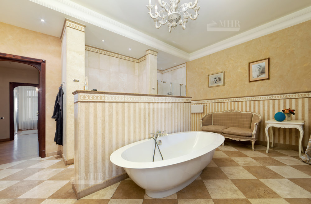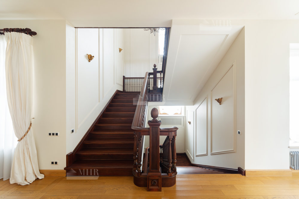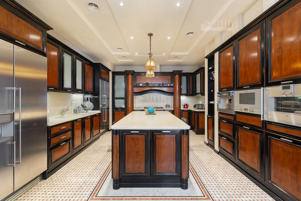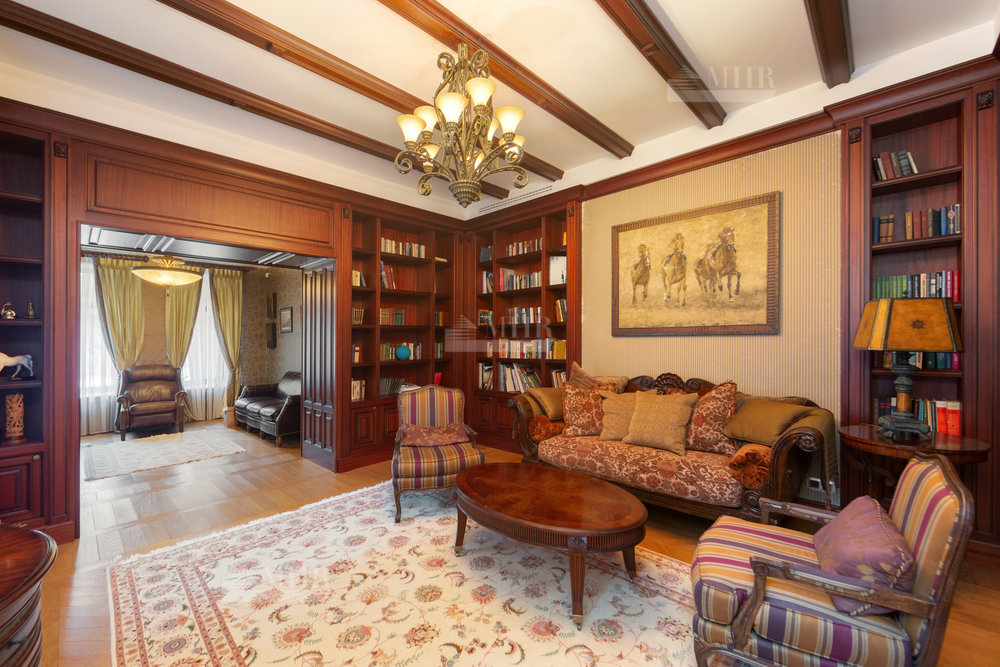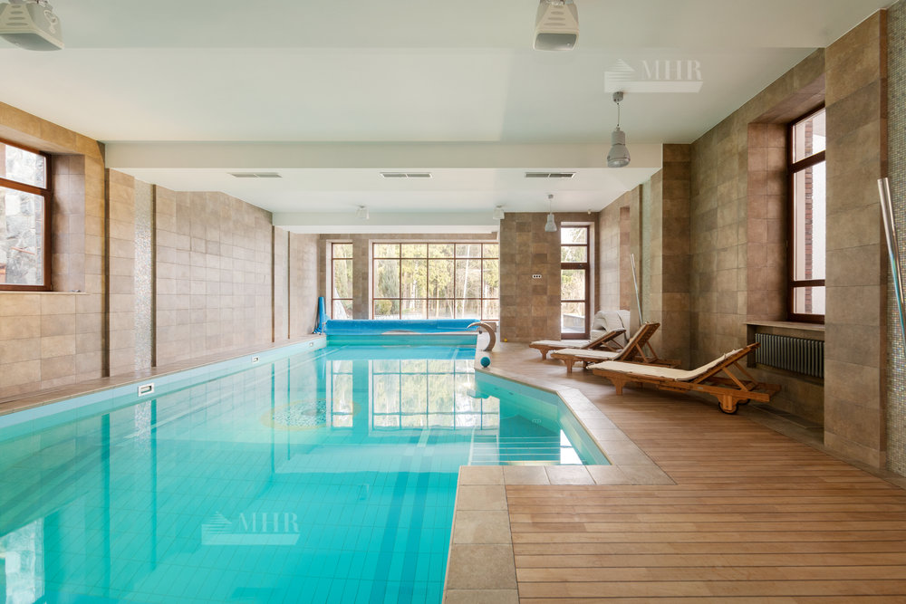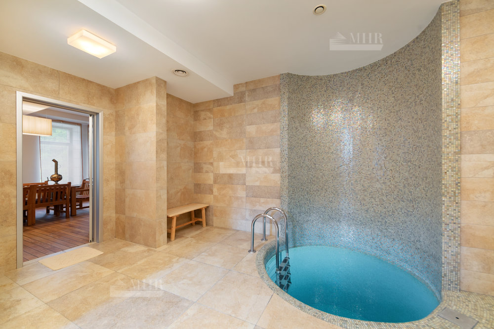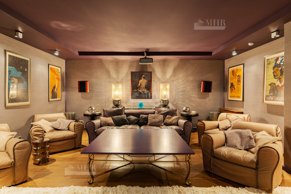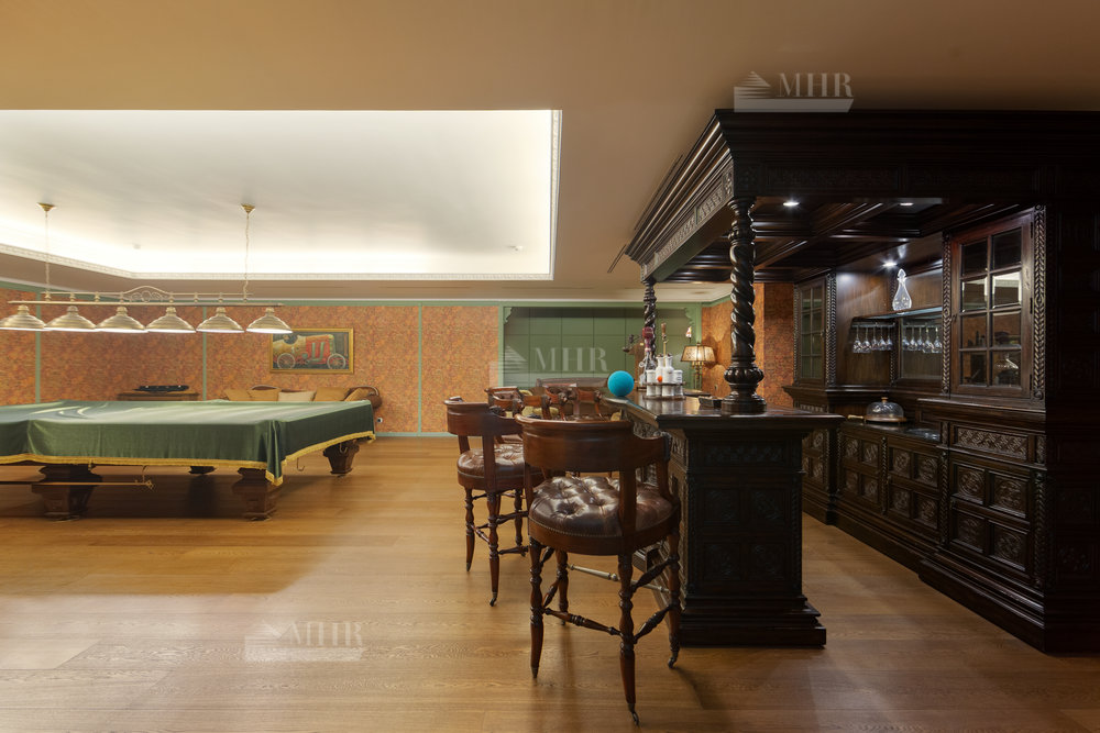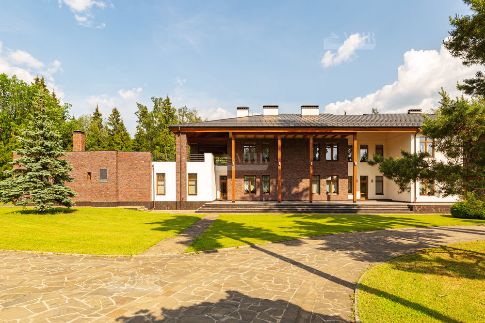 Предлагается на продажу великолепная под ключ с мебелью трехуровневая загородная резиденция, построенная на огромном живописном лесном участке с дорогим ландшафтным дизайном, в охраняемом коттеджном поселке "Мозжинка". Усадьба состоит из трех строений: основной дом, соединенный подземным проходом со служебным флигелем, в котором расположен гараж на шесть машин, также при въезде на территорию есть дом для охраны.