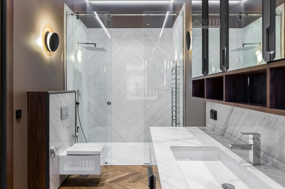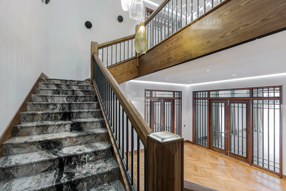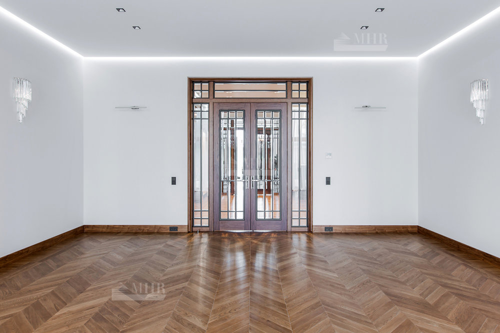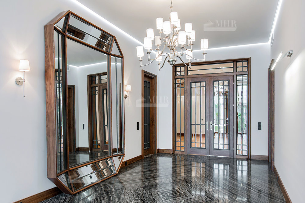 Великолепный  новый  дом  «под  ключ»  в  коттеджном  поселке  «Жуковка  XXI»  выполнен   по  авторскому  дизайн-проекту.  Все  детали  интерьера  нестандартные,  эксклюзивные,  изготовлены  по эскизам архитектора специально для этого дома. Увеличенные дверные проемы, высокие потолки, шикарные люстры  создают  торжественный,  величественный  вид.  В  отделке  использованы  натуральные  дорогие материалы: камень, дерево, стекло, зеркало.