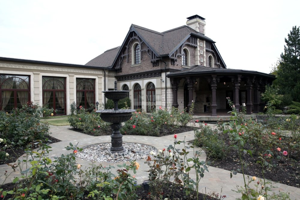 На территории также имеются: красиво разбитый розарий с центральным фонтаном ; регулярный водоем с водопадами, переходящий в пруд, заселенный рыбами (круглогодичная рыбалка );беседка, великолепный фруктовый плодоносящий сад; мини огород; закрытый гараж на четыре машины и навесом на четыре машины.