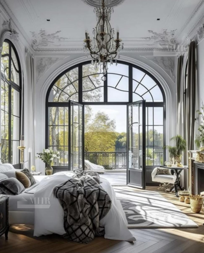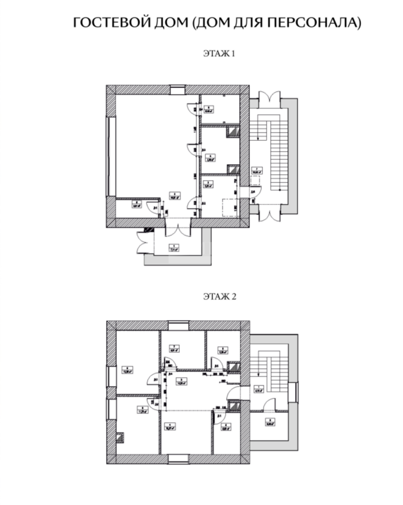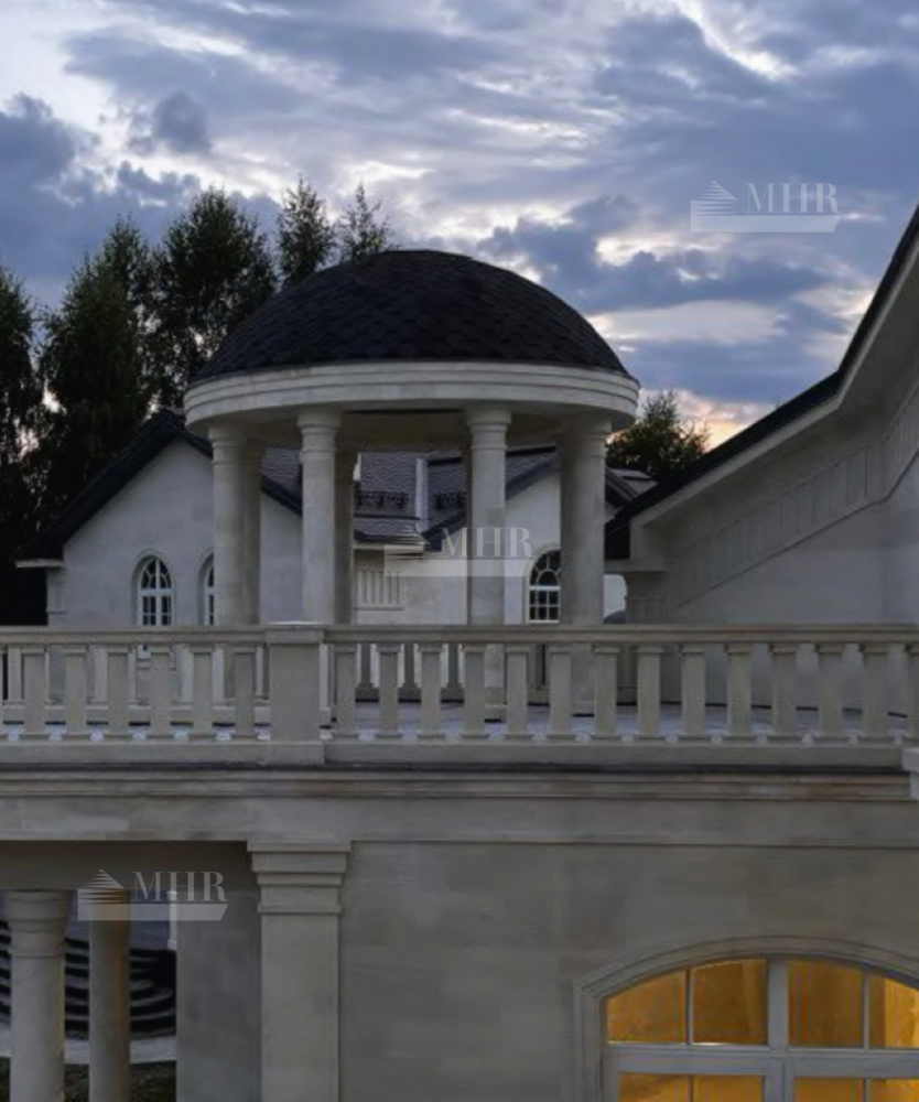 2-й этаж: в правом крыле дома находится зона хозяйственного блока: спальня, кабинет, гардеробная, санузел, в мастер-спальне предусмотрены светлая гардеробная и ванная комната с выходом на французский балкон, 2 спальни с выходом на бельведер.