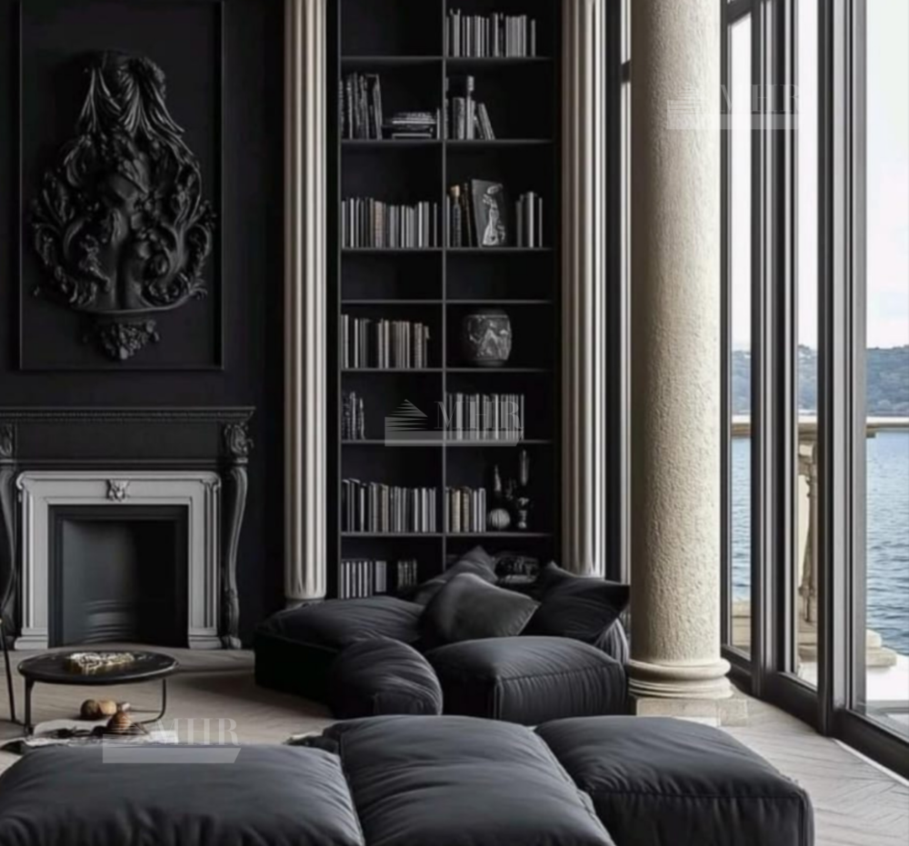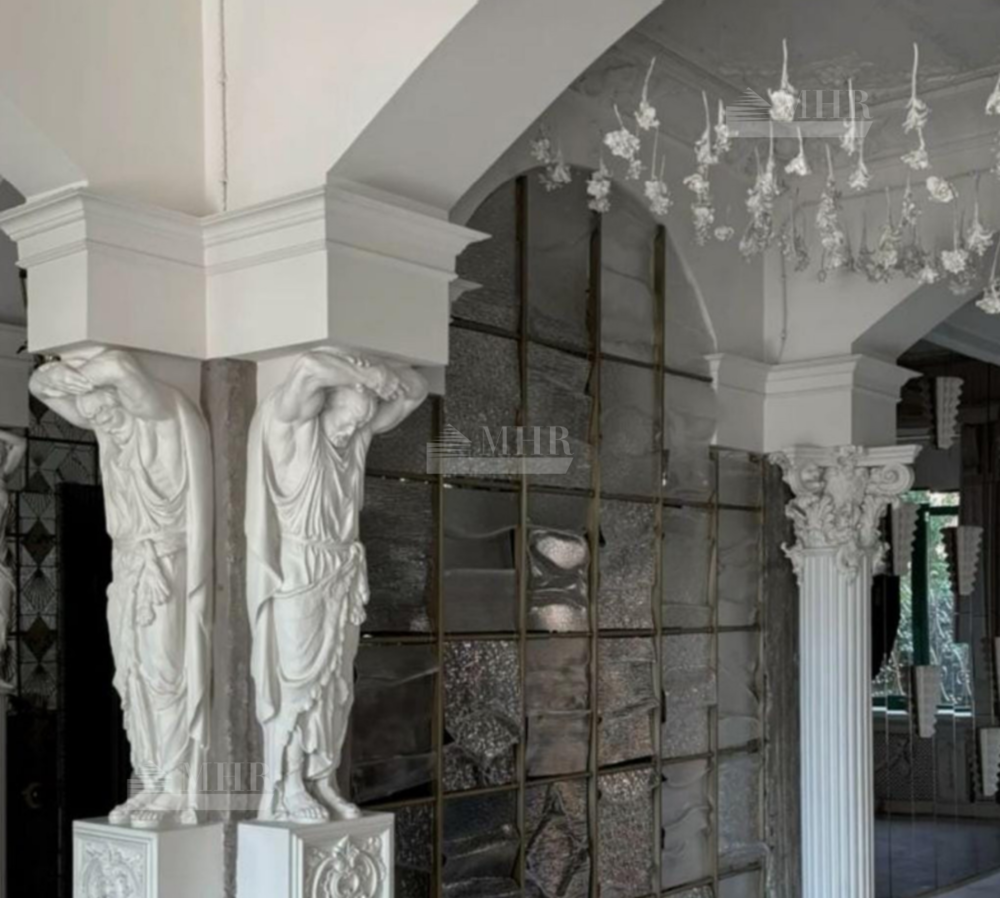 1-й этаж: просторная входная группа виллы, отдельная комната для гардероба, большой кабинет, Open-space зона кухни, гостиной и столовой с двойным светом, в пространстве гостиной выделена уютная зона домашнего кинотеатра, каминная зона с панорамным видом на сад, отдельная столовая- зимний сад с панорамными окнами и двумя выходами: в сад и на террасу.