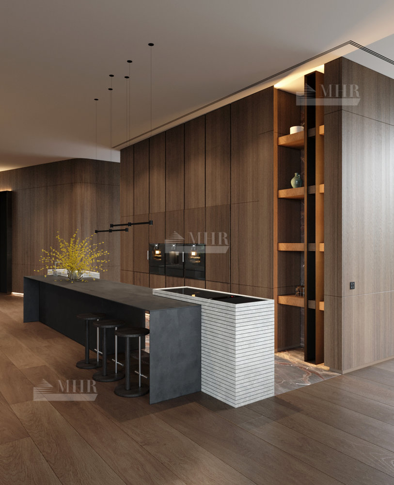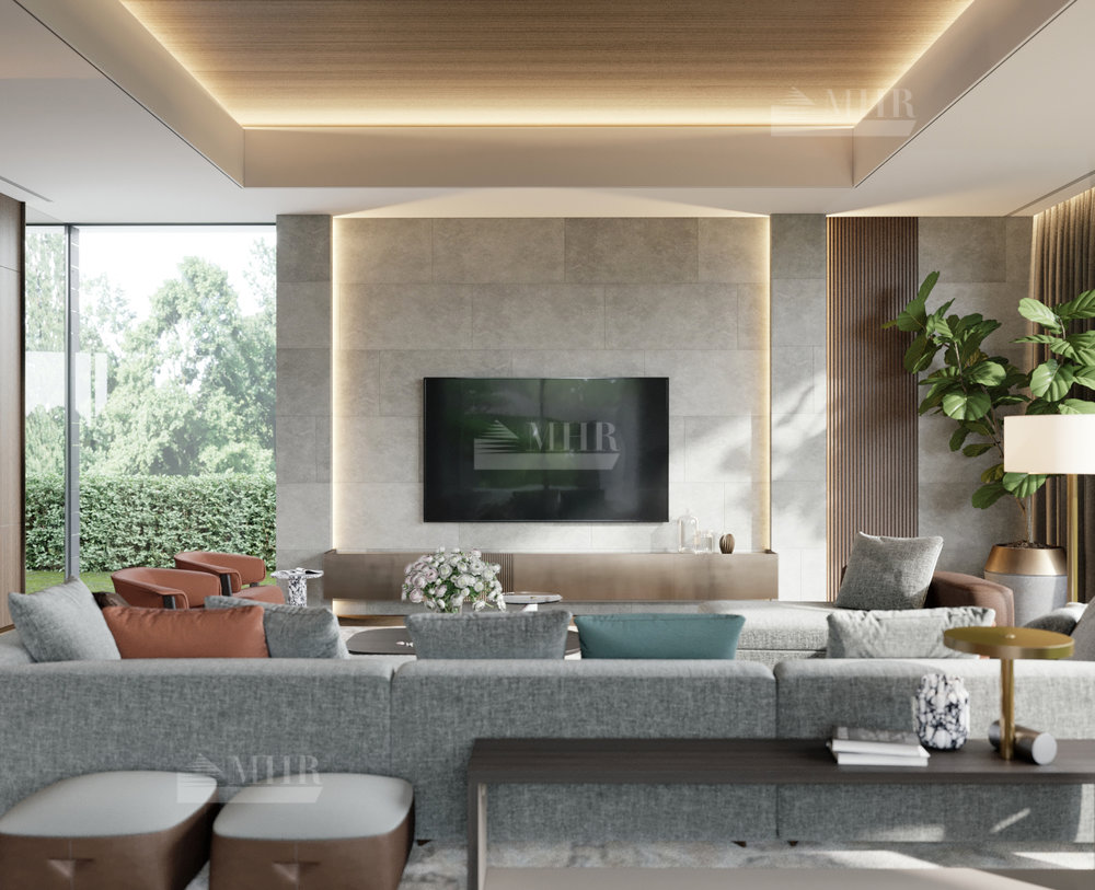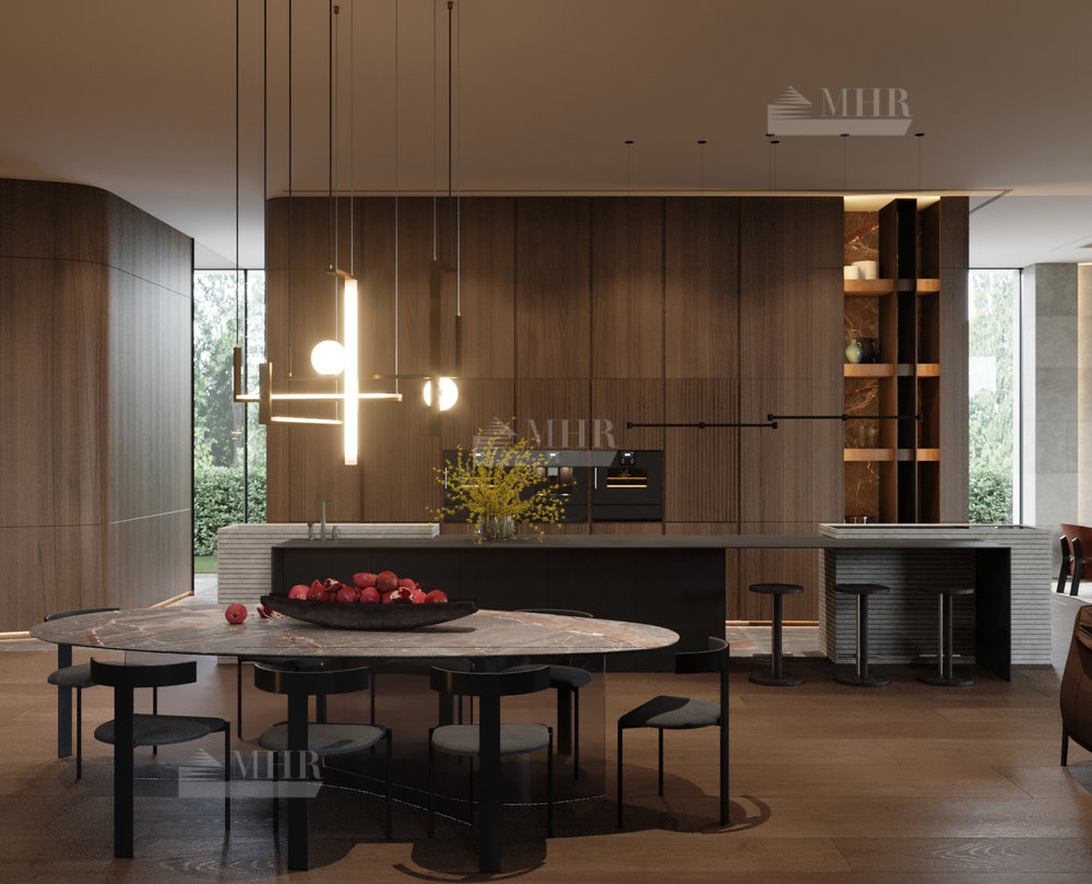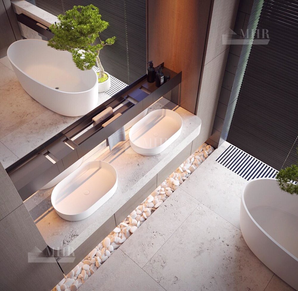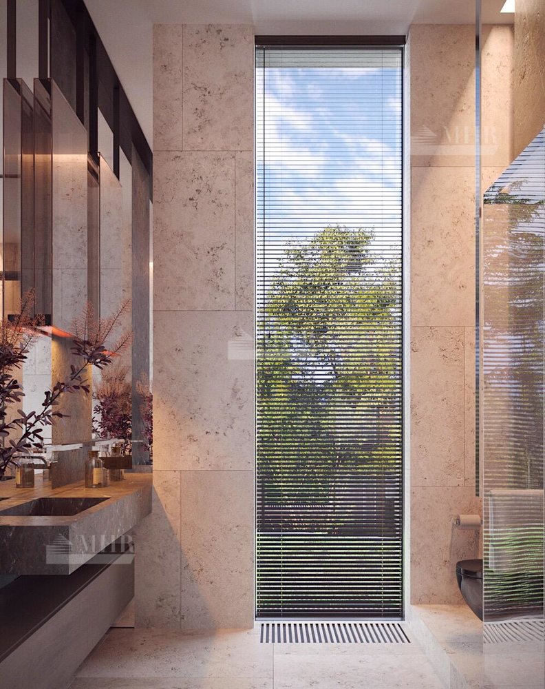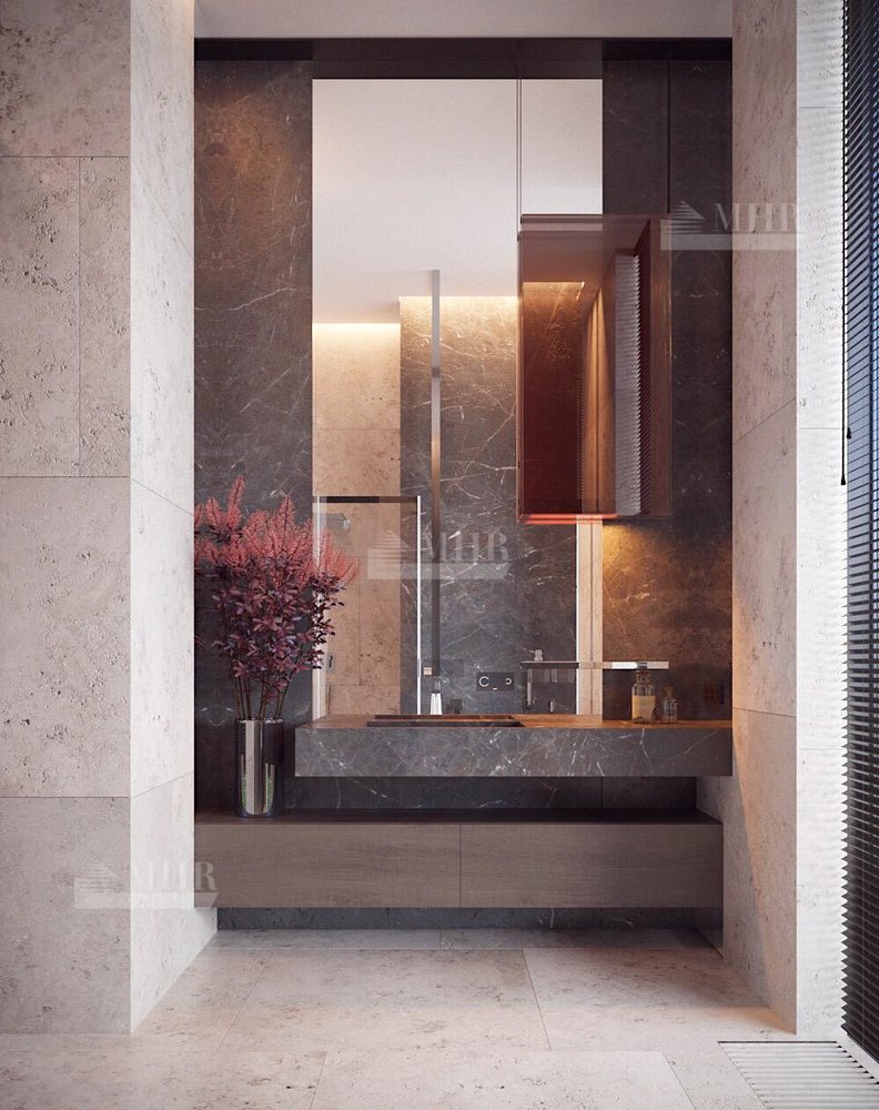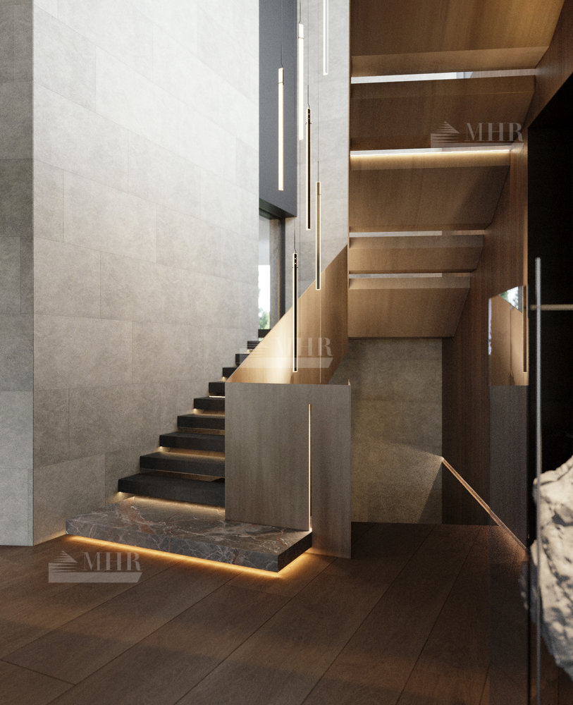 Резиденция представляет собой двухэтажный дом L-образной формы площадью 1917 м², обрамленный с солнечной стороны современными комфортабельными террасами. Площадь первого этажа составляет 760 м², второго — 400 м², окружающих террас — 249 м². Планировочное решение здания выполнено по классической схеме: первый этаж отведенпод общественные пространства, второй — под приватные. Также резиденция располагает подземным уровнем площадью 756 м², включающим в себя просторный зал свободного назначения и технические помещения.
